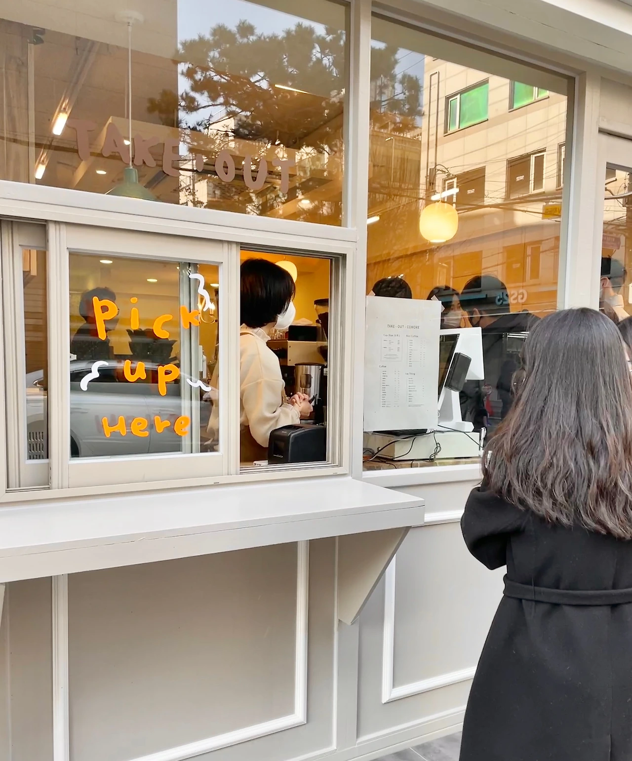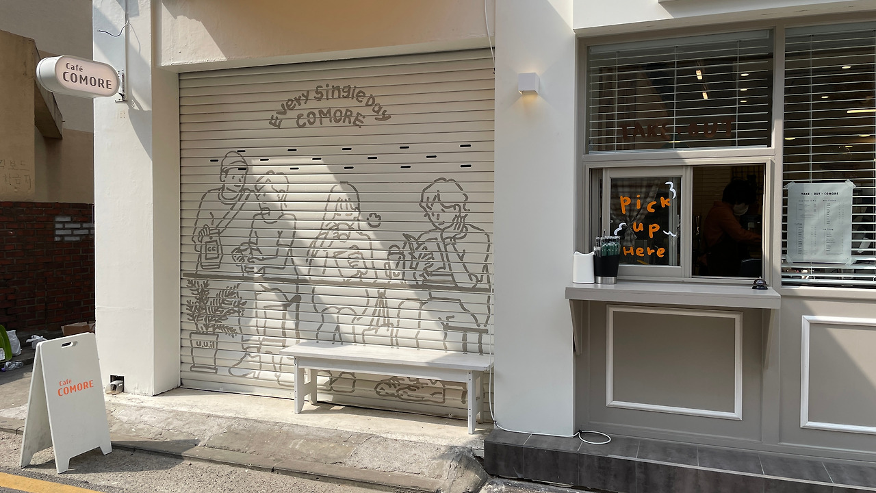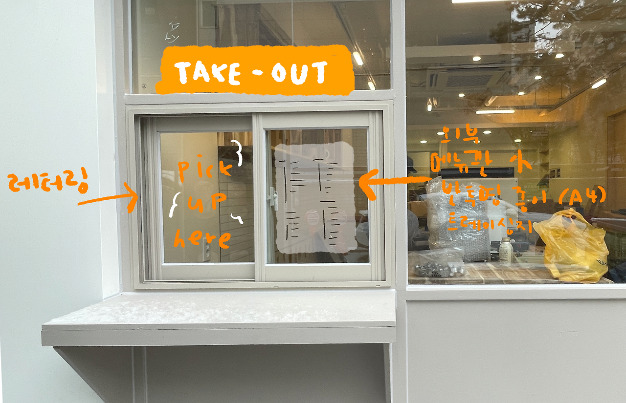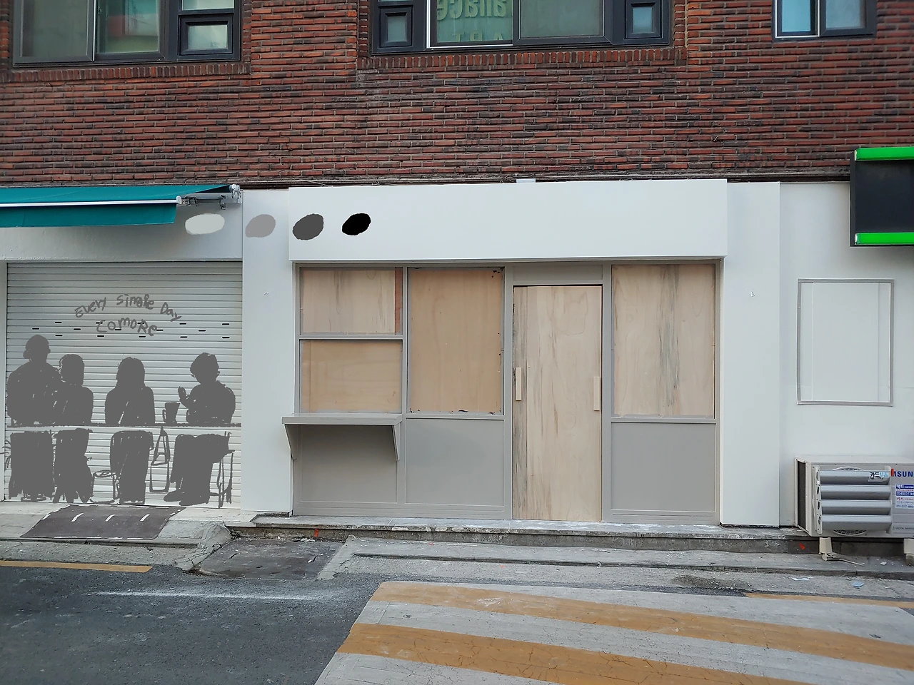 시트지 색상이 처음에는 너무 형광색이라 망했다... 싶었는데 업체 사장님 왈, "야외에서 보면 또 달라요." 라고 해서 현장에서 다시 보니 정말 아주 괜찮더군요..! 재제작하지 않고 의견 주셔서 감사했습니다. 사전에 사진을 찍고 세심하게 잘 계획해도 현장에서 달라지는 것들이 꽤 많습니다. 사람의 눈높이, 조명, 움직임, 단순변심 등의 요인들로 말이죠. 역시 실무는 겪어봐야한다...또륵.