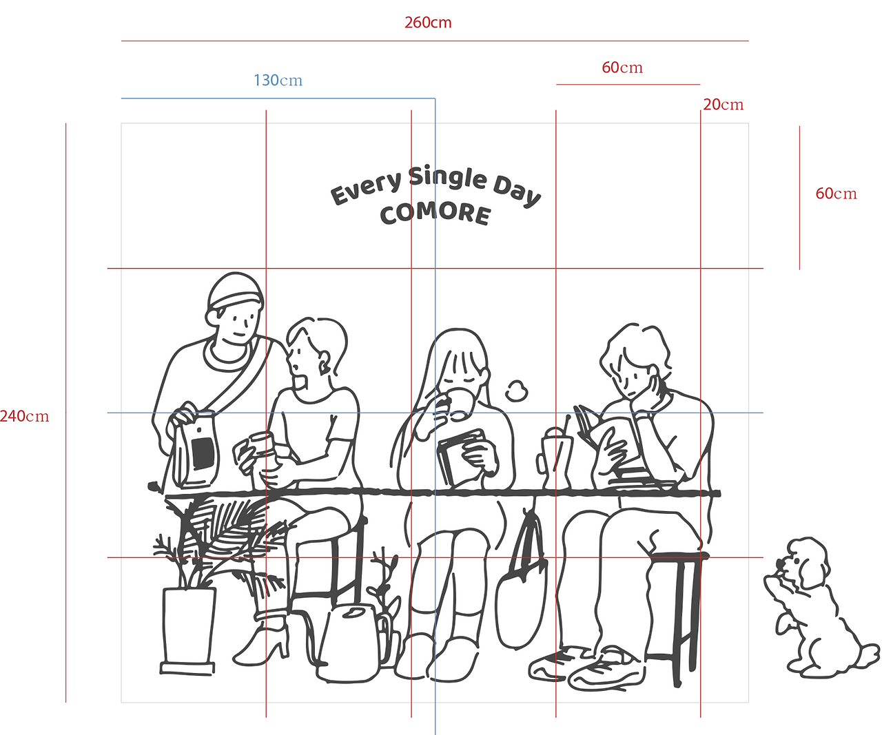 시트지 붙이는 것도 미리 데이터화 해두고 간격을 적어둡니다.