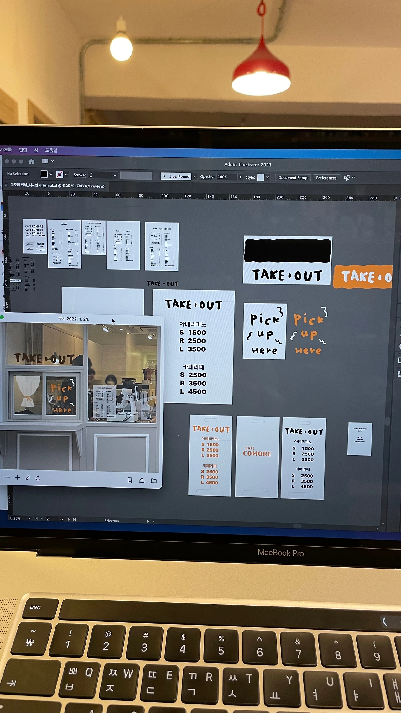 시안은 사장님께서 원래 원하던 것과 2,3시안까지 준비해서 본격 설득? 작업에 들어갑니다.