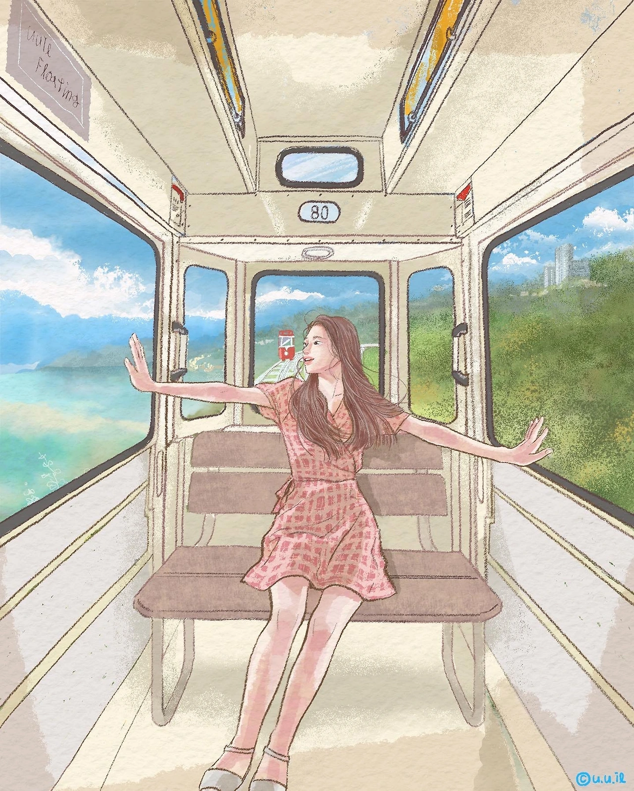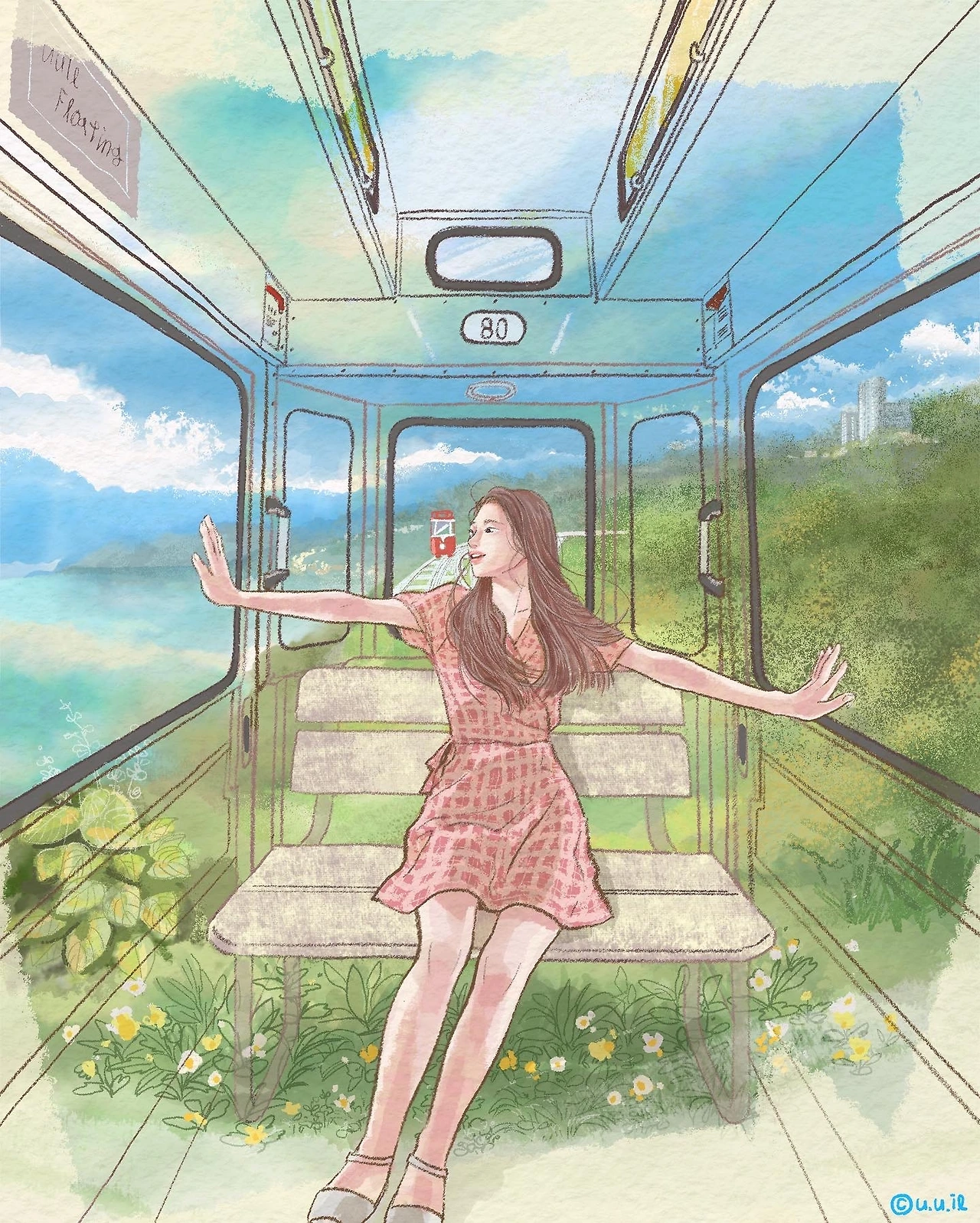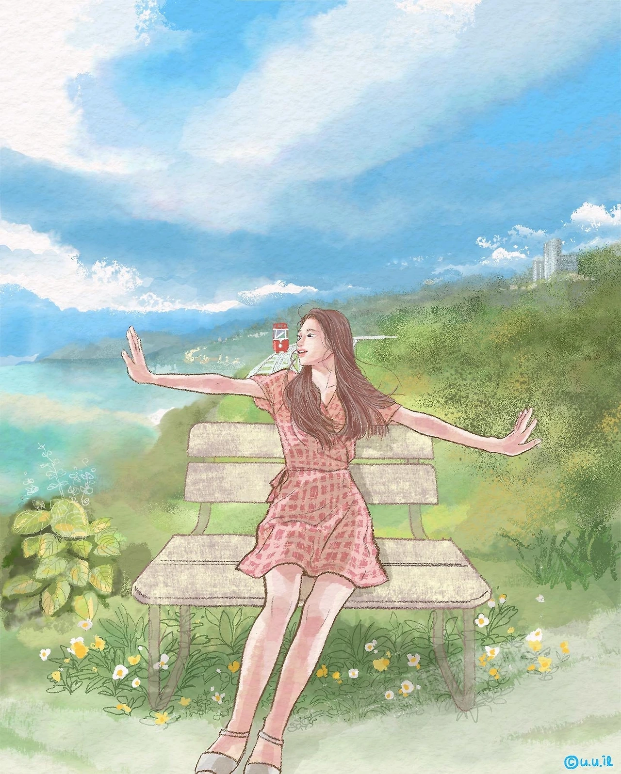 여름이니까 시각으로라도 청량함을 한껏 느끼고 싶어서 시원스런 투명뷰로 그려보았어요. 장소 선정 하루, 구도잡기 하루, 본작업 이틀… 컨펌 후 업로드. 한 달에 한 번 업로드 하는 유유일 산책의 여파로(?) 일상툰은 좀 늦어지고 있네요 느리지만 즐겁게 그려야지
