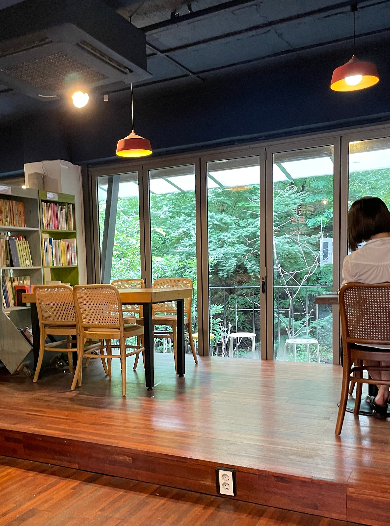 에무시네마 바로 뒤편에는 수풀로 우거져있어서 1층, 2층, 3층 테라스에서 그야말로 정글 같은 녹음을 볼 수 있어요. 서울이 아닌 어느 시골에 와 있는 것 같은 초록 풍광은 정말 아름다웠습니다… 만 모기가 아주 많이 있으니… 염두하시고 들어가 보세요! 멋진 초록 풍광 사진은 제 스토리에 올려둘게요.:)