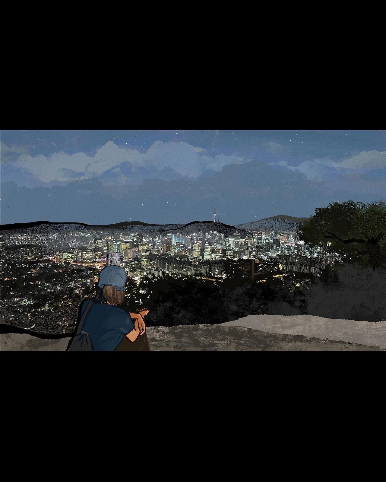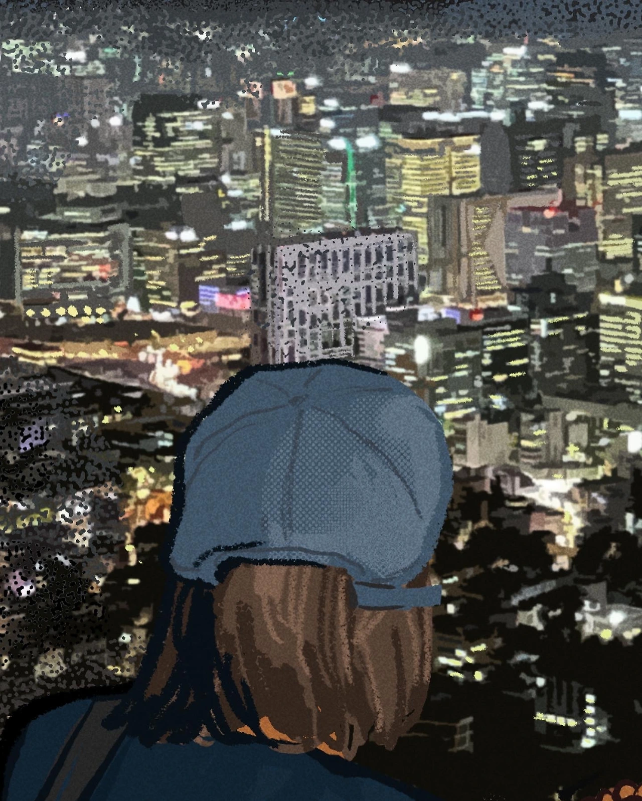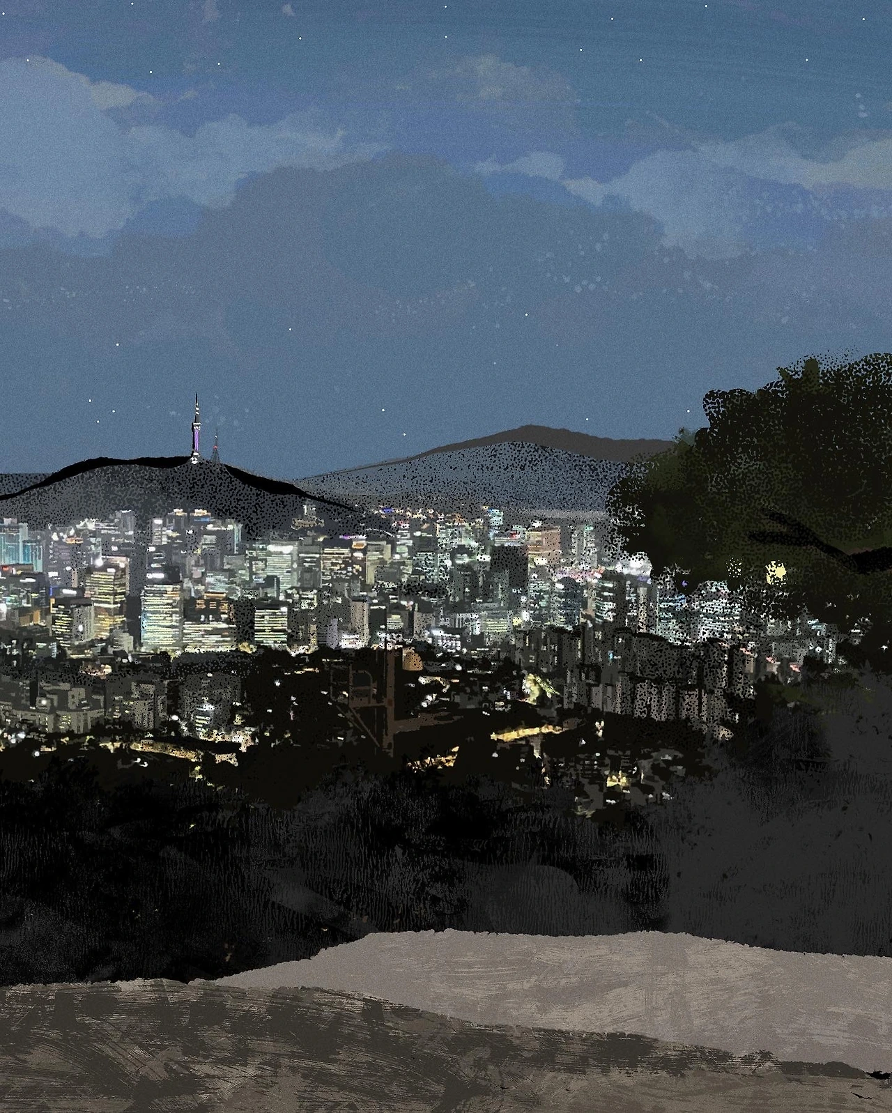 저는 고운 하늘색과 바위의 대비감도 멋스러웠고 서서히 지는 노을도 좋았지만 뭐니 뭐니해도 해가 진 뒤의 야경이 제일 좋았어요. 이번 인왕산 산책 코스에서 즐겁고 멋진 곳이 너무 많았지만 개인적으로 너무 좋았던 인왕산 야경을 이번 유유일 산책 커버그림으로 선택했어요.