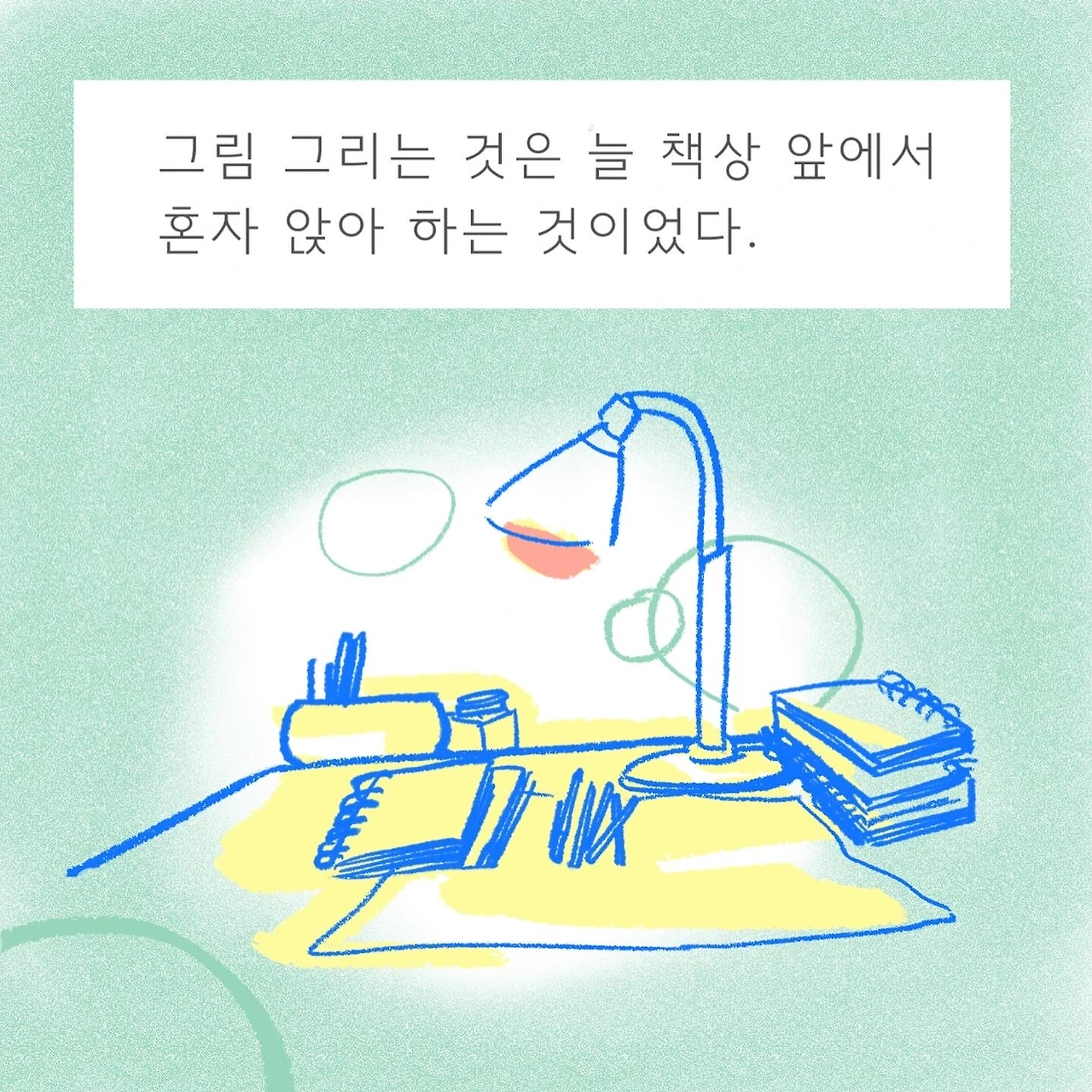 어도비 일러스트 그룹수업을 정기적으로 진행합니다. 식물을 키우며, 지내며 부유일기를 그리고, 작업실에 출퇴근, 가늘고 길게 하고 싶은 일을 합니다.