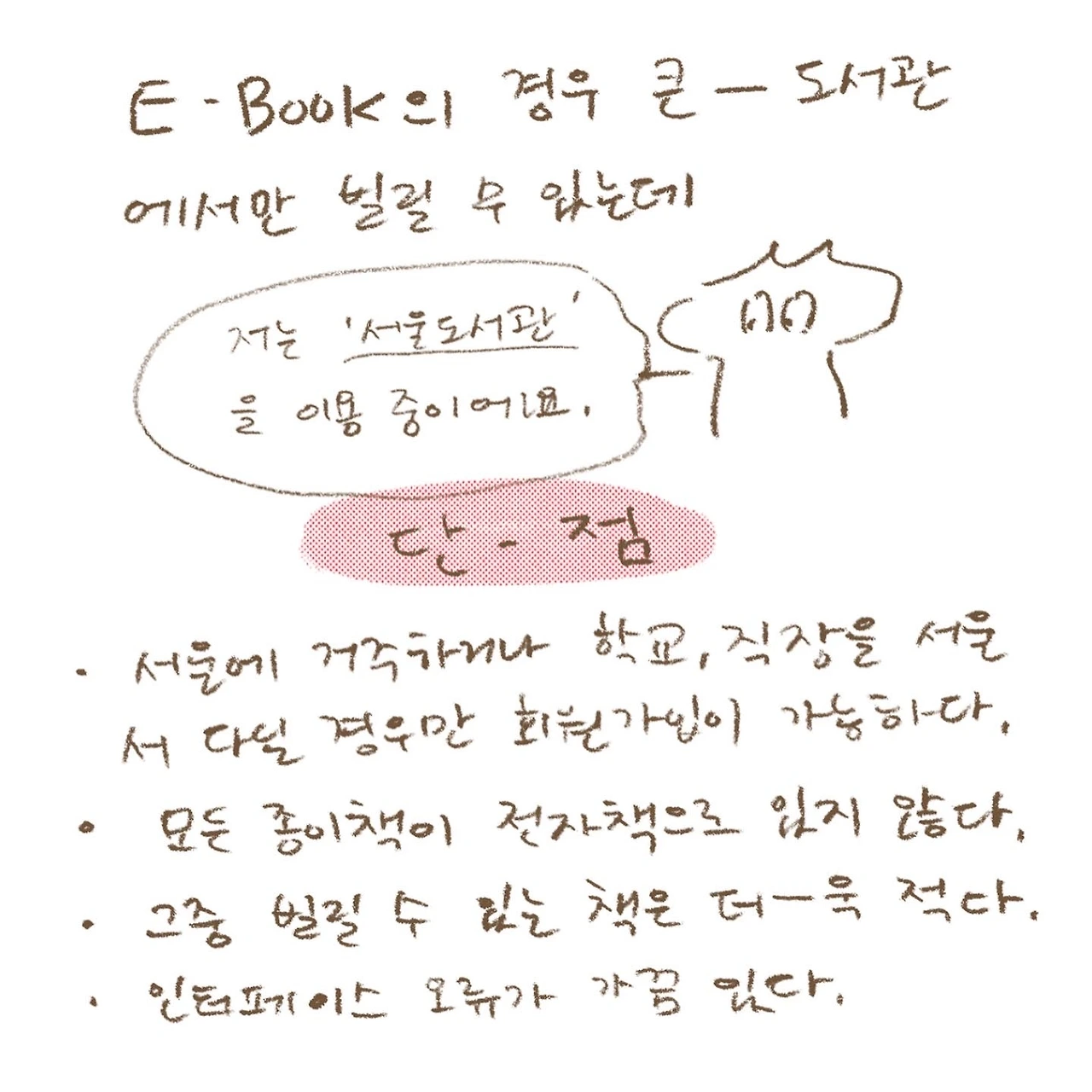 전자책 대여는 서울도서관(어플)을 사용 중입니다.