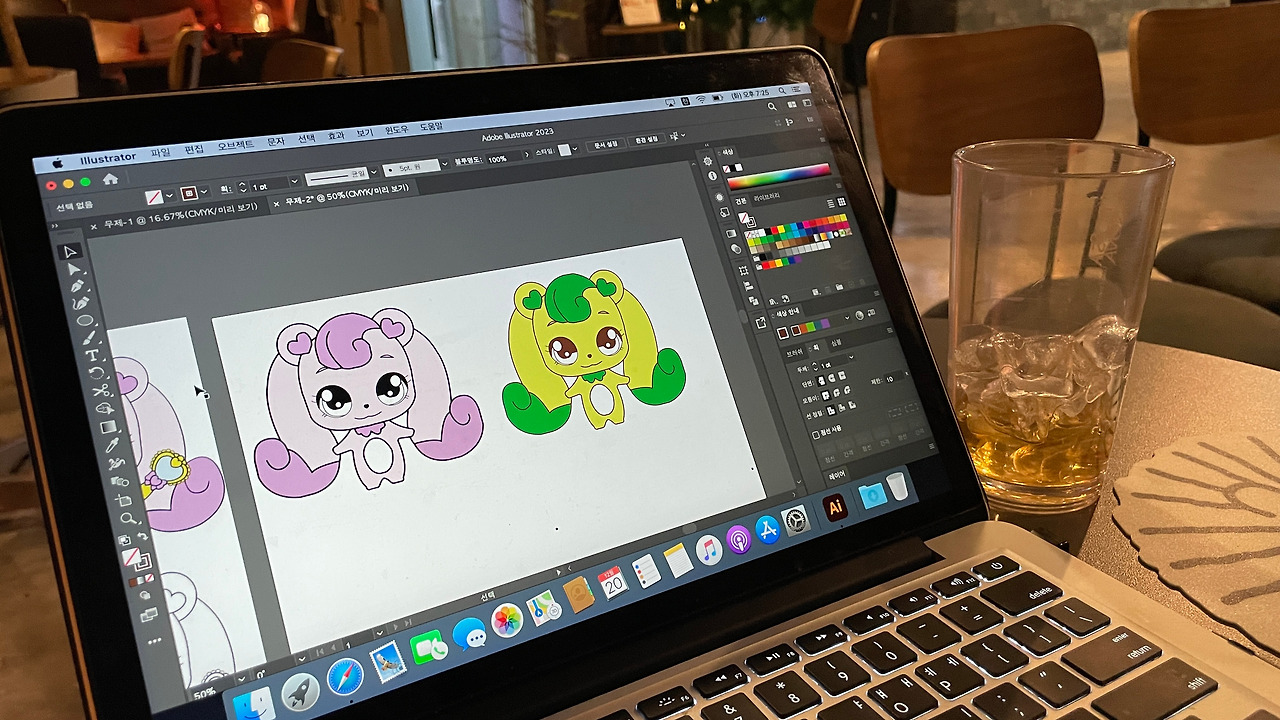 2회. 해오신 숙제를 함께 보며 펜툴 기초, 캐릭터 그려보기로 패스에 대한 이해를 돕습니다.