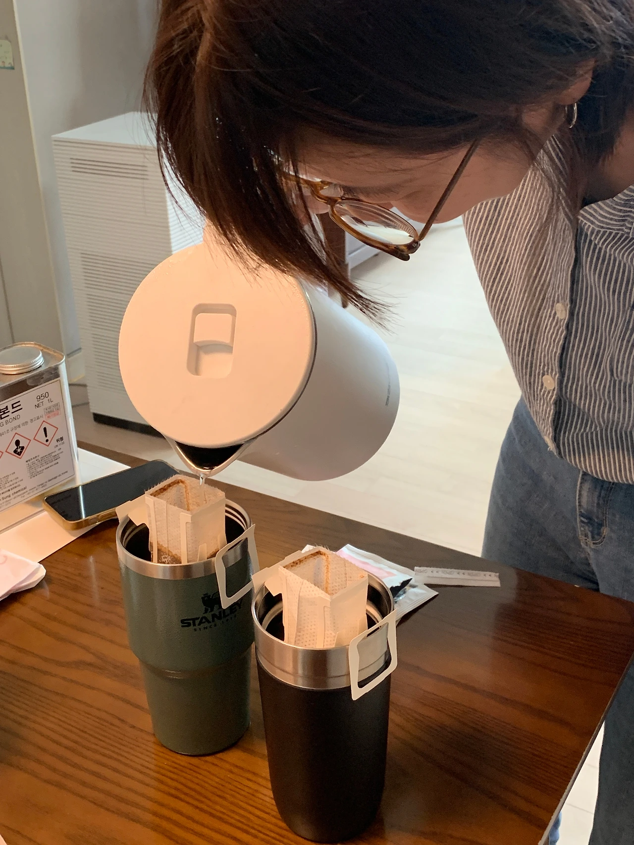 딱 가죽 수업 들으며 나눠마시면 좋겠다 싶어 가져갔어요!