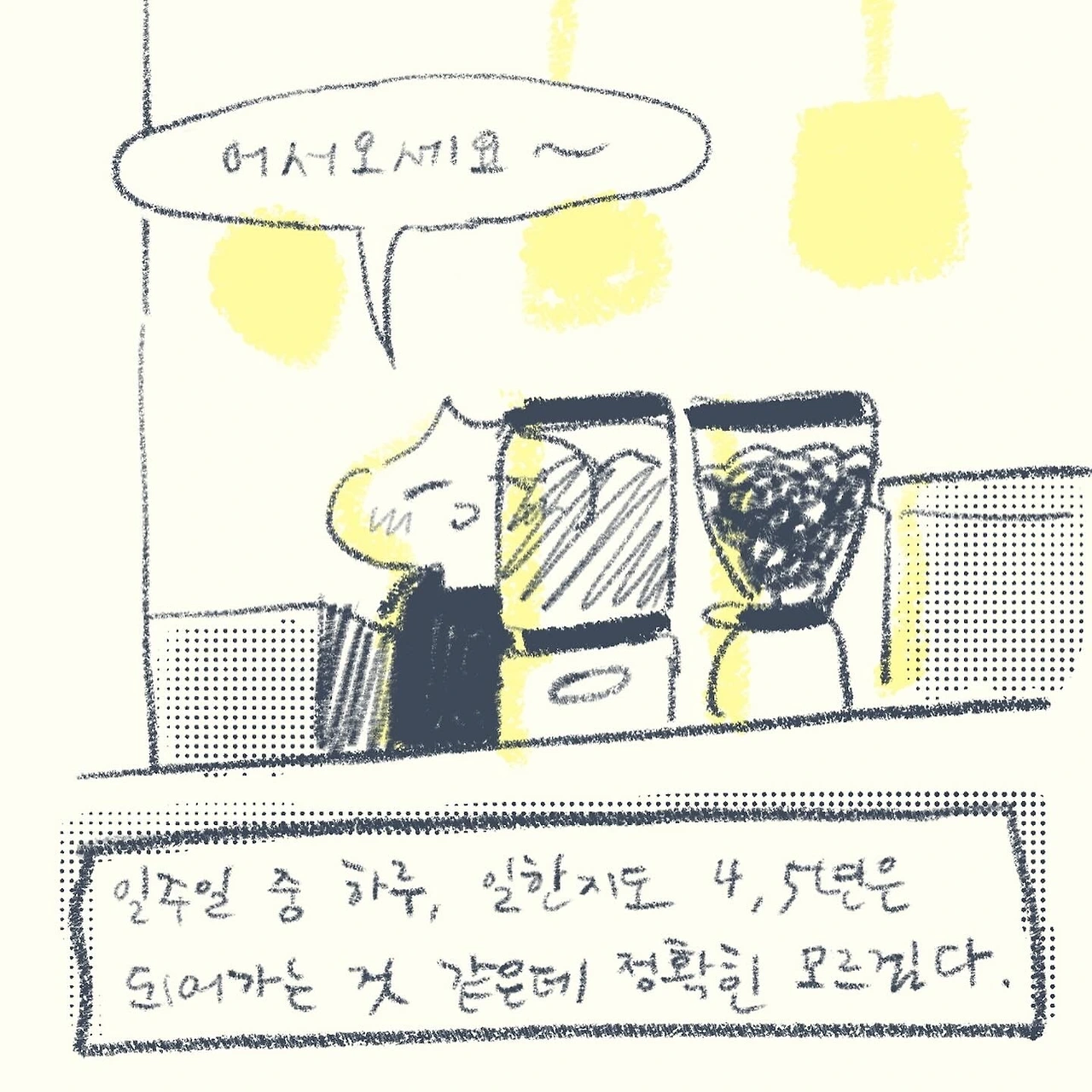 어도비 일러스트 그룹수업을 정기적으로 진행합니다. 식물을 키우며, 지내며 부유일기를 그리고, 작업실에 출퇴근, 가늘고 길게 하고 싶은 일을 합니다.