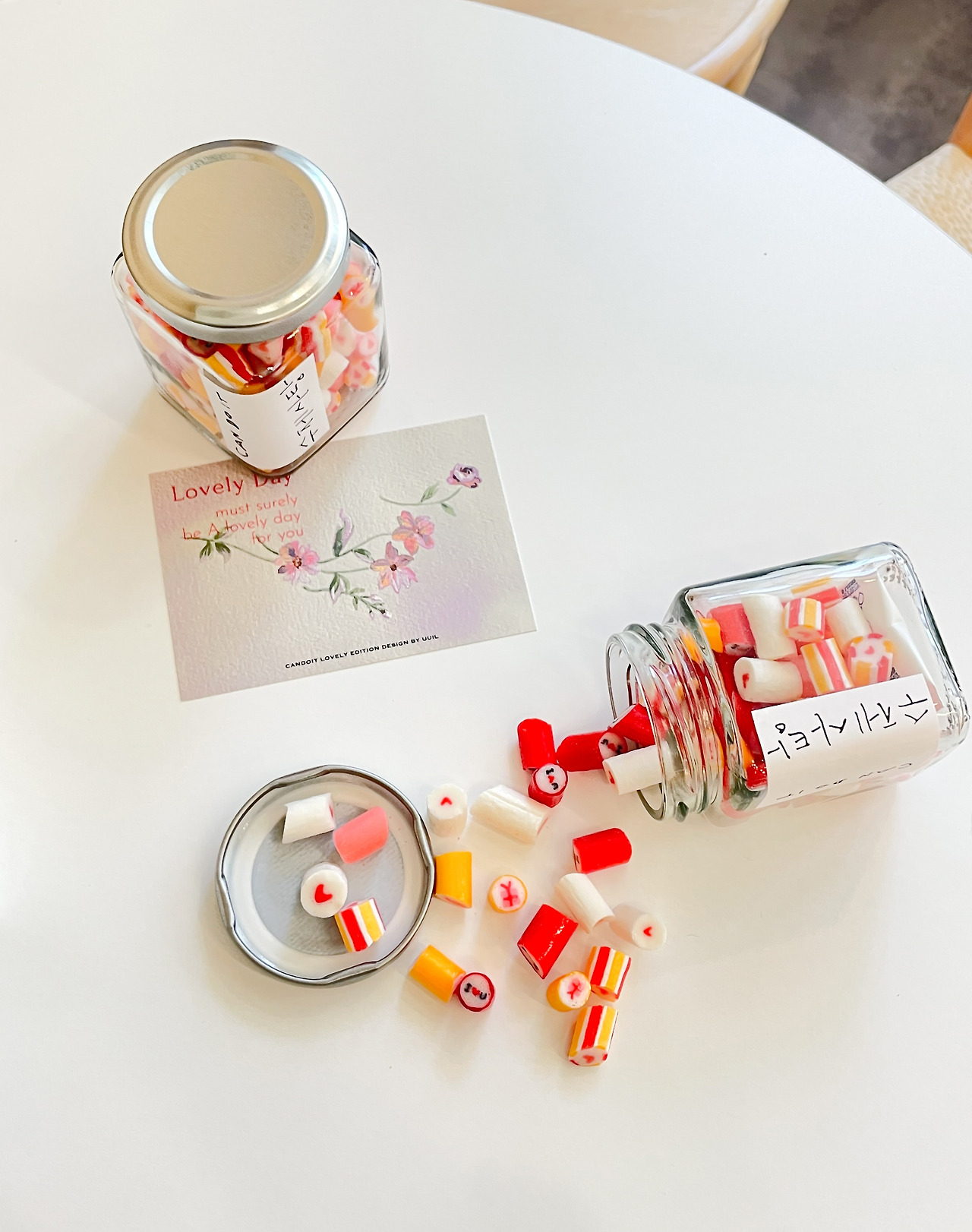 그리고 요건 비닐파우치 제품. 시즌에 따라 이벤트용 사탕이 발매되고 그에 맞는 라벨을 붙인다.