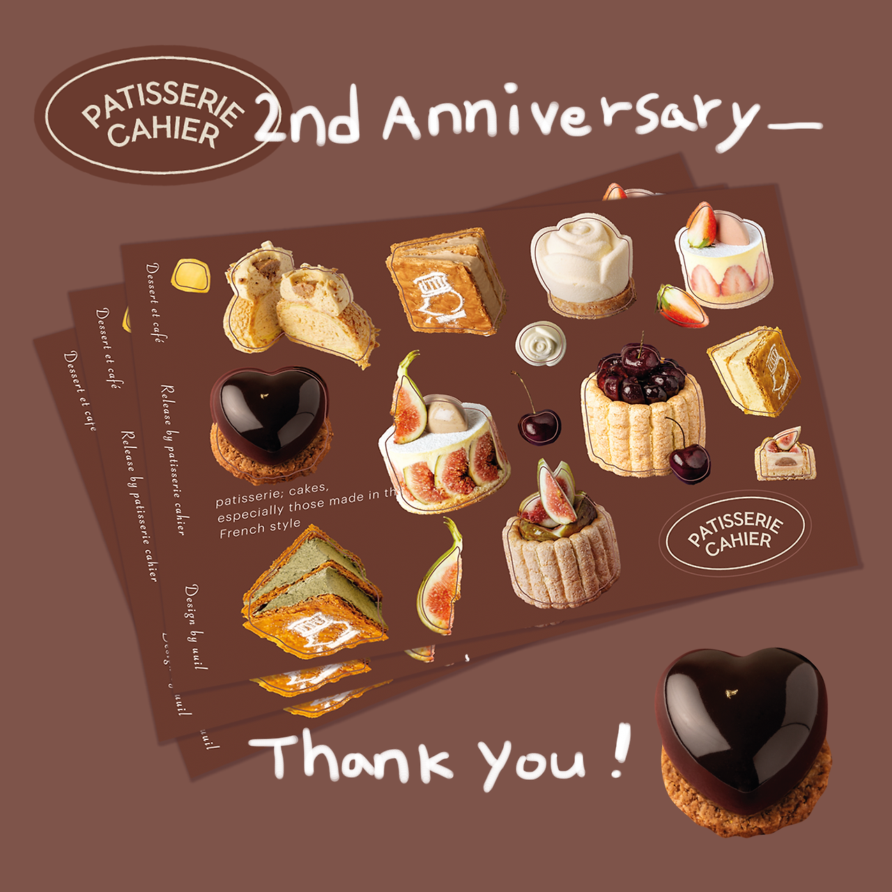 아주 소량 만든 2주년 특별 에디션 판스티커! 케이크도 영롱하고 사진도 영롱해서 스티커 디자인하며 너무 즐거웠어요! 사장님께서 케이크 사진을 전문 작가님께 맡겨서 찍어놓으신 것은 정말 정말 잘하신 거에요. 좋은 사진은 업체에 큰 도움이 됩니다. :) 이렇게 굿즈로 만들어질지 모르셨겠지요? 그 전에 사장님께서 본업 열일로 멋진 케이크를 만들어온 시간들이 있었기에 이렇게 사진으로 담기고, 굿즈로도 표현될 수 있었지요. 저두 스티커 갖고 싶어요...(...) 다행이 (?) 스티커 업체 좋은 곳을 이번에 새로 알게 되어서 납품하고도 여유분을 잘 챙겨주셔서 저의 아카이빙용 자료로 킵 할 수 있게 되었습니다. =-) (하투) 나중에 포스팅 할 기회가 있다면 모아서 알려드릴게요! ></