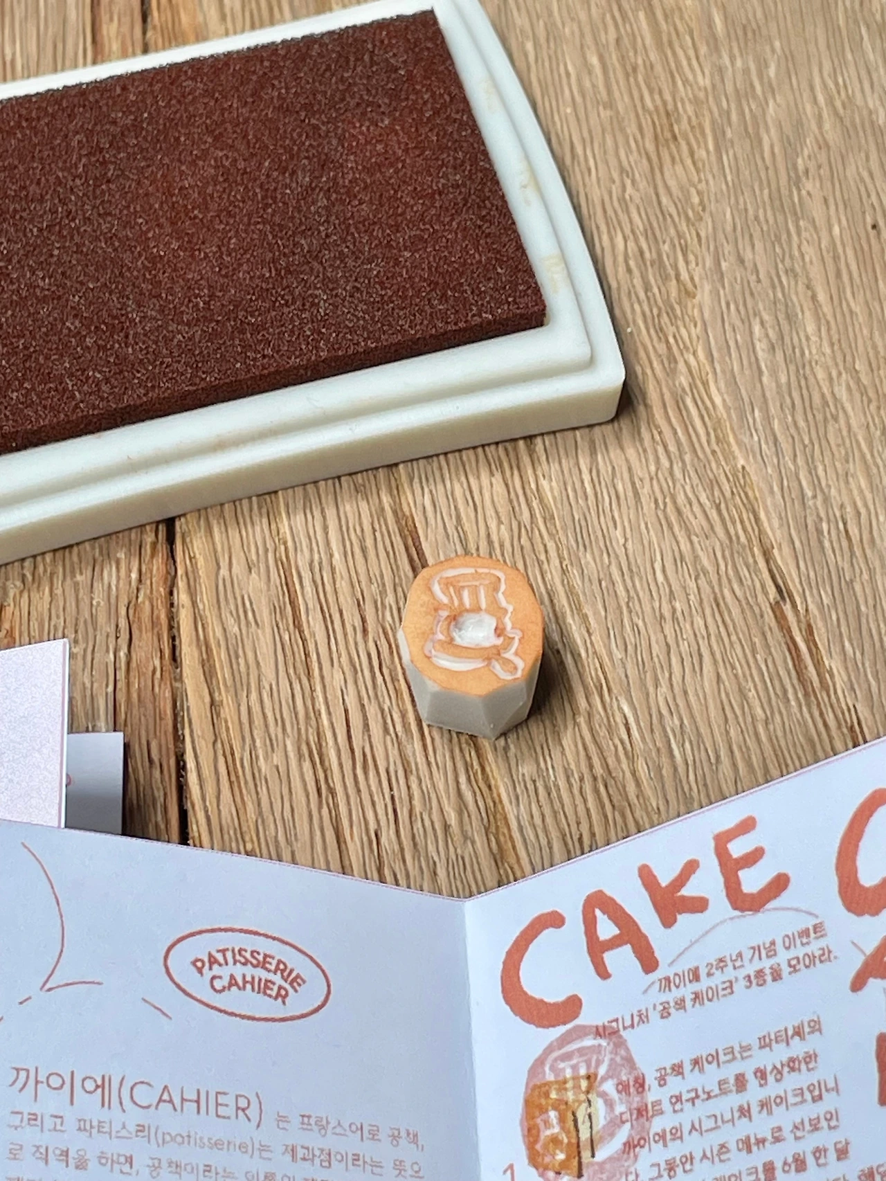 그렇게 알게 된 사장님께서는 당시 제가 빠져있던 지우개 도장 만들기에 관심을 보이셨고.. ^^; 언제 워크샵에 참여하고 싶다고 하셨는데요, 그러고 얼마 지나지 않아 까이에 2주년 이벤트 굿즈를 만드는 일을 의뢰하셨답니다. 사전에 제 작업물을 보시긴 하셨겠지만- 만나서 이것 저것 묻지도 않고? 바로 맡겨주신 것이 의아했어요. 그러나 곧 의아함은 뒤로하고 풍부한 몽상가인 저는 이건 어떠세요? 저건 어떠세요??? 이렇게 할까 저것도 좋다! 신나서 굿즈 제안을 하게 됩니다. ㅎㅎㅎ