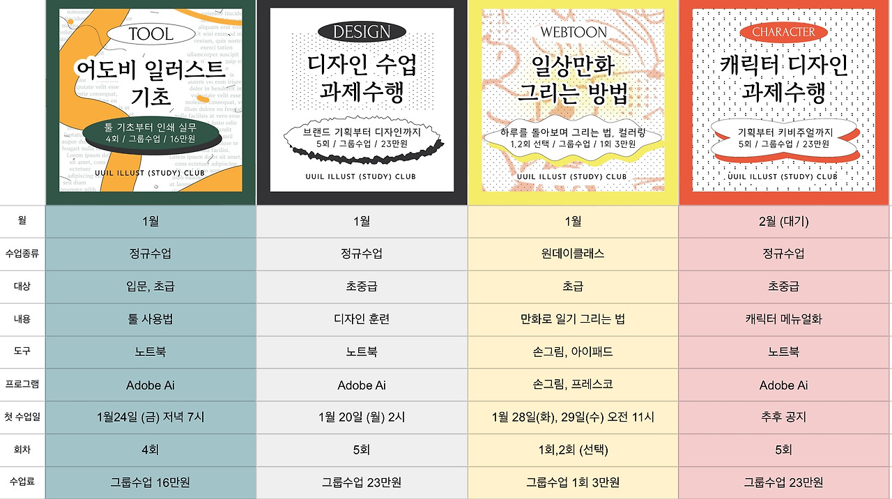 새로운 정규수업과 원데이 클래스 일정이 오픈되었습니다. 한 눈에 이해가 쉽도록 준비해봤습니다. 예약하기 전에 아래 글을 꼼꼼히 읽어주시기 바랍니다. :)