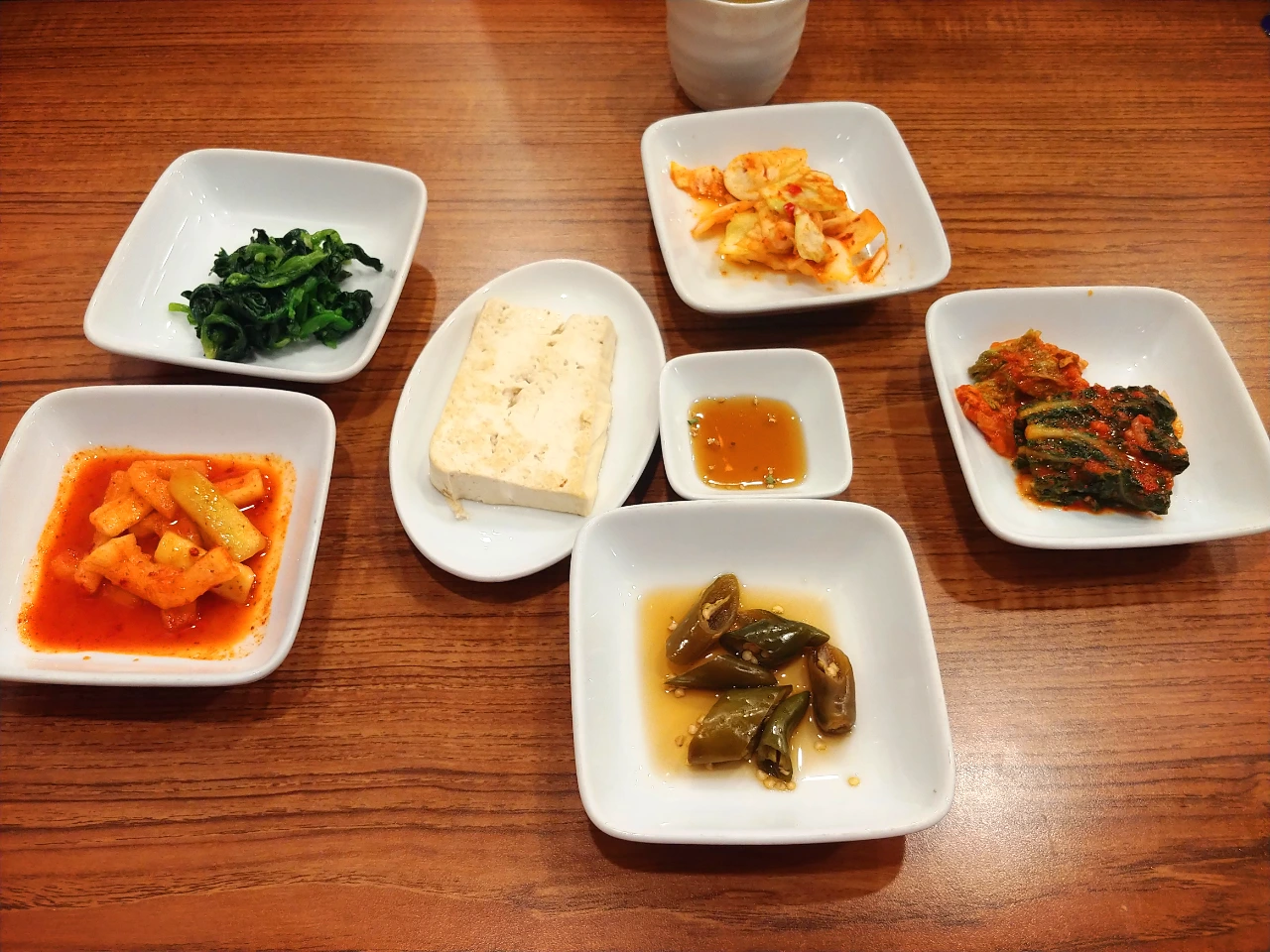 자리에 앉자마자 말한다. 메뉴판을 보지도 않고. 주문하자마자 아주머니는 네모난 두부, 김치, 무말랭이, 나물 반찬 몇 개를 담은 그릇들을 들고 오신다. 테이블에 그릇들이 옹기종기 자리를 잡으면 나는 얼른 젓가락을 꺼내 김나는 두부를 자르고, 두부 위에 김치를 올려 입 속에 넣는다. 따뜻한 부드러움이 허기를 감싸안는다. 젓가락이 바쁘다. 나물도 맛봐야 하니까.