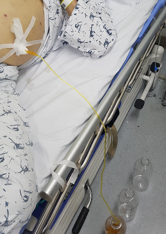 응급실 내원한 지 4시간 만에 복수천자를 먼저 하게 되었다. 간경화나 간암환자들이 복수가 차면 임산부처럼 배가 딴딴하게 부풀어 오르고 호흡이 불편하고 힘들어진다. 뭐든지 우선 해야 했다. 아니, 의사가 와서 하라는 대로 시키는 대로 그냥 아빠의 몸을 맡길 뿐이었다. 배에 굵은 바늘을 꽂으니 의식이 몽롱한 아빠는 자꾸 주사를 뽑으려고 했다. 나는 '이거 해야한다.'고 계속 반복해서 말하며, 일어나려는 아빠를 계속 눕혔다. 그 사이 피검사도 했다. 복수천자 하는 사이에 관장을 맡은 인턴이 왔는데 복수천자 중이라 지금은 관장을 못한단다. 우리 아빠보다 응급실에 늦게 들어온 간성혼수 환자가 관장을 시작했다.
