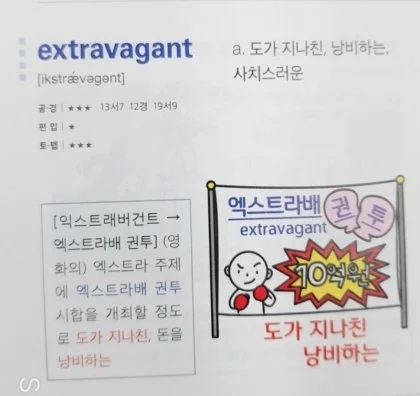 위에선 LLM이 학습의 '이해' 과정을 개선시킨 것을 보았는데, 이번엔 '암기'에 대해 살펴보자. 암기라는 주제는 원래 긴 이야기가 필요하지만 분량 상 결론만 말하겠다. 장•단기 기억력에 있어서 가장 중요한 것은 텍스트를 공감각적이고 강한 인상의 이미지로 변환하는 것이다. 과거에 「경선식 영단어」가 유행했던 것을 아는 사람이라면 무슨 이야기를 하고 싶은 것인지 이해가 갈 것이다. 경선식 영단어의 치명적인 단점은 이미지가 억지스럽다는 것이다. 타겟 독자를 잘 한정하지 못하고 단어 개수도 감당할 수 없게 늘리다 보니, 단어를 이해하기 쉬운 이미지로 변환하는 데에 실패한 것이다.