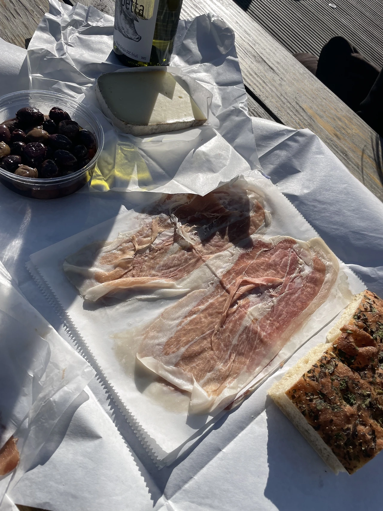 캐네디언 친구가 추천해 준 퍼블릭 마켓 안의 작은 이탈리안 그로서리 마켓에 들러 간단한 요깃거리를 구매하기로 했다. 다양한 품목에 당황하고 있던 차에 점원이 직접 맛과 식감을 상세히 설명하며 우리 취향에 맞는 것을 추천해 주었다. 그의 따뜻한 친절 덕분에 고른 샤퀴테리와 치즈, 비노를 부둣가에 앉아 맛보던 순간은 여행의 낭만을 가득 채워주었다. 직원분의 따뜻한 추천과 함께했던 한상 차림, 그리고 눈앞에 펼쳐진 바다 풍경은 그 자체로 완벽한 힐링이었다.