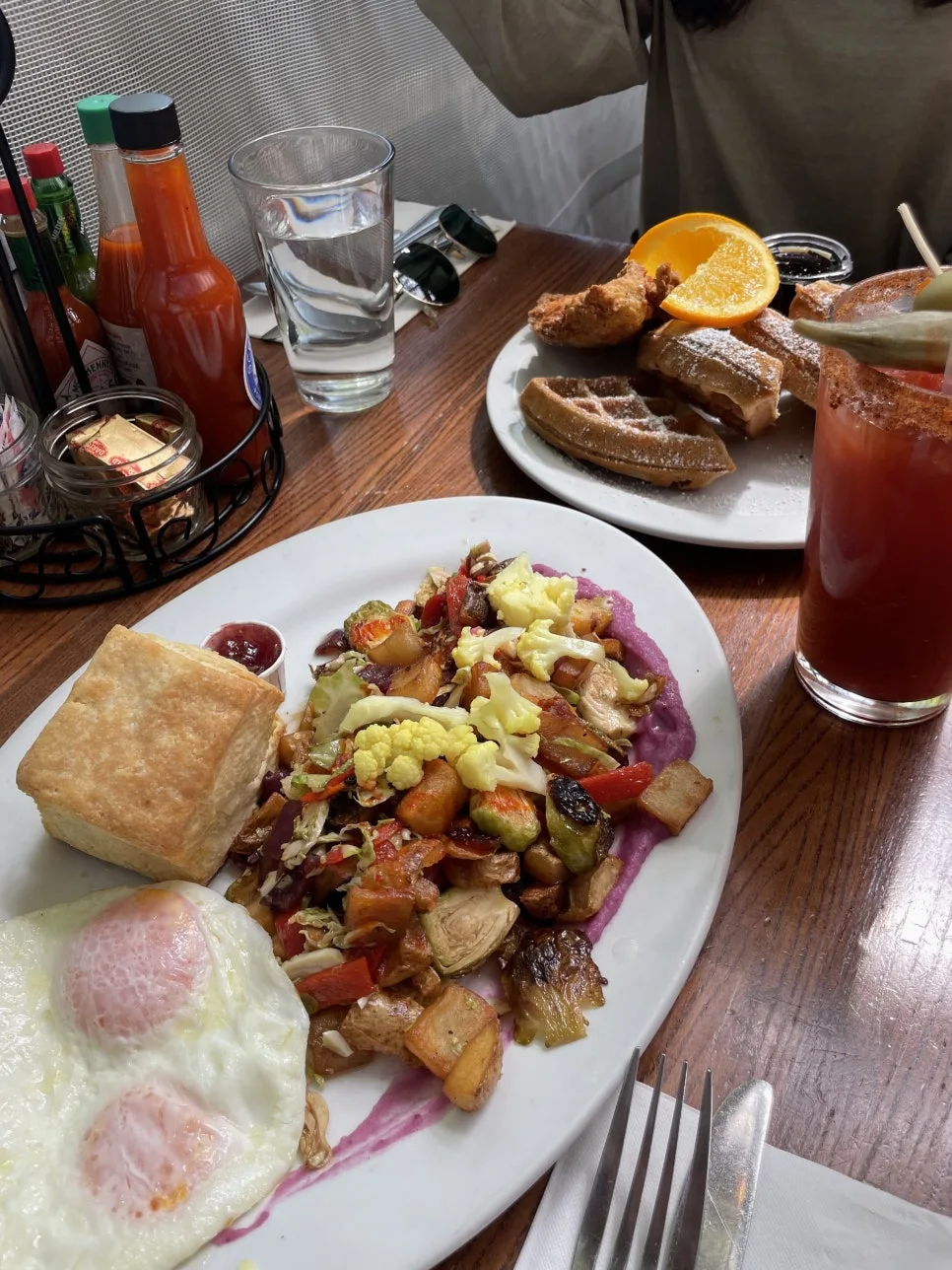 포틀랜드 곳곳을 돌아다니는 즐거움은 자전거가 만들어 주었다. 호텔에서 빌린 자전거를 타고 미식의 여정을 이어갔다. 포틀랜드의 시그니처 '부두 도넛'은 캐나다의 팀홀튼보다 더 자극적이게 맛있었고, 나쁘지 않았던 ’스텀프타운‘의 아이스 아메리카노, 그리고 가장 기대했던 미국 남부식 브런치집 '스크린도어'에서 맛본 시그니처 메뉴 Fried chicken and waffle은 기대 이상이었으며 샐러드는 잊을 수 없을 만큼 맛있었다. 도저히 샐러드라고 가벼이 여길 수 없는 구운 야채의 식감, 발사믹과 오리엔탈 그 사이의 종 잡을 수 없는 퍼플소스의 조합은 정말이지 당장이라도 주방에 들어가 레시피를 배워가고 싶은 맛이었다. 특히 처음 도전한 블러디메리의 쨍한 핫소스 맛이 강렬해서 잘 마시지 못하자 본인도 그럴 때면 토마토 주스를 더 많이 넣어서 마신다며 서버가 우리 앞에서 직접 다시 제조해 주었고, 그래도 마시기 힘들어하자 싱긋 웃으며 '생소한 음식엔 그럴 수 있다'며 계산에서 빼주기까지 했다. 그녀의 따뜻한 친절에 감동해 아낌없이 팁을 남겨주었다.