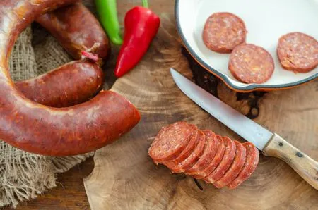 수죽은 터키를 비롯한 중동, 발칸반도 지역에서 즐겨 먹는 드라이 소시지예요. 주로 소고기나 양고기를 주재료로 하여 마늘, 고춧가루, 큐민, 파프리카 등 다양한 향신료를 넣어 만들어요. 발효 및 건조 과정을 거쳐 특유의 진한 풍미와 쫄깃한 식감을 가지게 된답니다.
