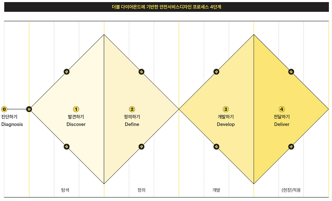 한국디자인진흥원 - 더블다이아몬드프로세스에 기반한 안전서비스디자인 프로세스 https://kidp.or.kr/