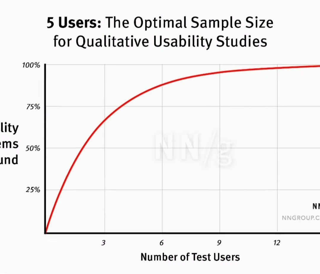 유저 리서치에서 중요한 핵심 결과들은 5명의 결과로 거의 수렴한다는 이론이다!