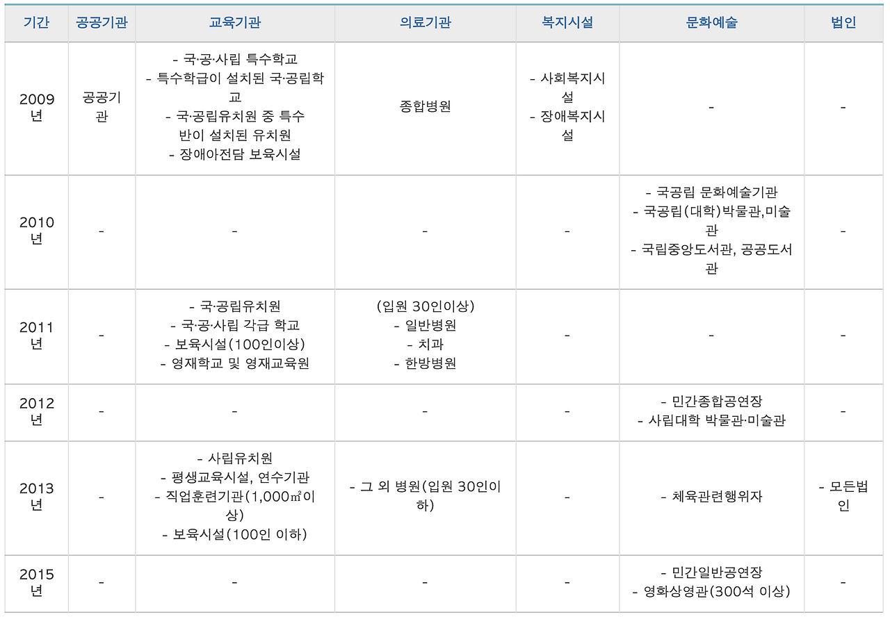 이렇게 장애가 있는 사람이 정보 획득에 차별을 막는 장차법은 2008년 시행했으며, 2008년부터 공공기관에 단계적 적용을 거쳤다. 그리고 2013년 4월 11일 모든 법인까지 적용 범위를 확대했다.
