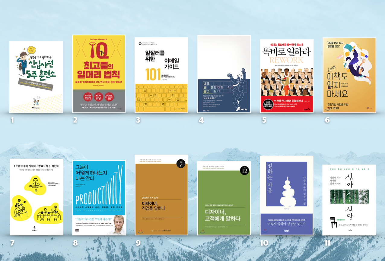UX 디자이너로 직장 생활을 하면서 틈틈이 비즈니스, 생산성, 직업관 관련한 책을 읽거나 찾아보았다. 그리고 상황에 따라 이와 관련된 책을 추천하기도 했다. 이에 이와 관련된 책을 모아보았다. 도서명을 선택하면 관련 정보를 확인할 수 있다.