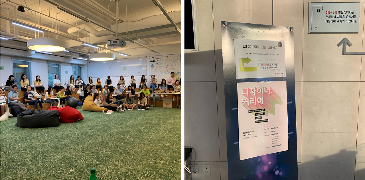 예전에 SDS 프로젝트로 함께 했던 지인의 소개로 동네 디자이너 크-럽 에서 '디자이너, 커리어'라는 주제로 발표를 하게 되었다. 동네 디자이너 크-럽 밋업은 이번에 두 번째 치러지는 행사이고, 특정 주제와 관련한 연사들을 모셔 간단하게 Small talk을 하고, 이후 주제에 대한 각자의 경험을 자유롭게 공유하는 네트워크 시간이 있는 자유로운 분위기의 행사이다. (간단한 샌드위치와 다과가 제공되는데 무려 맥주가 구비되어 있다!)