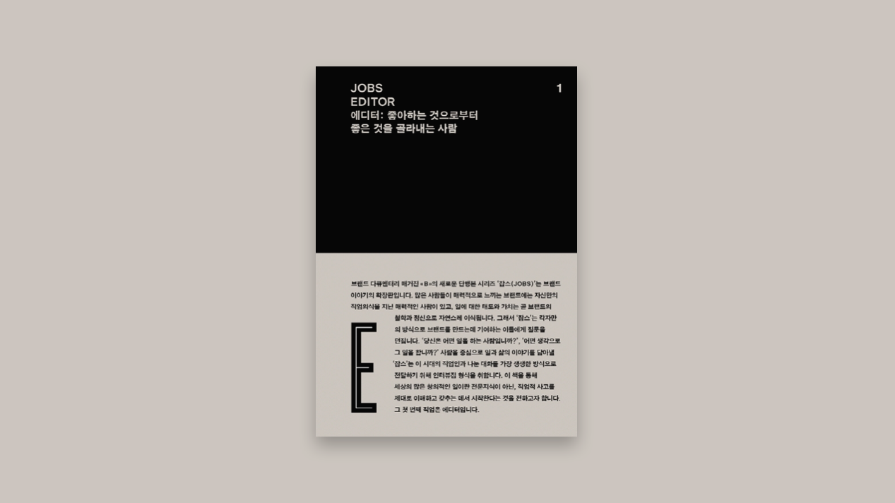 디자이너라면 모르려야 모를 수 없는 매거진 B를 출간한 <Reference by B>에서 직업관을 다룬 책을 냈다. 첫 직군은 바로 '에디터'이다. 어떻게 보면 에디터는 디자이너와 접점이 많은 직군이라고 생각한다. 이 책은 다양한 일을 경험한 다섯 명의 에디터를 인터뷰의 형식으로 조명한다.