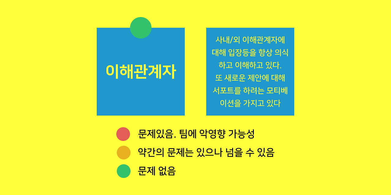 빨간색 : 팀에 문제가 생각되고 부정적인 영향을 미칠 가능성이 높다고 생각된다