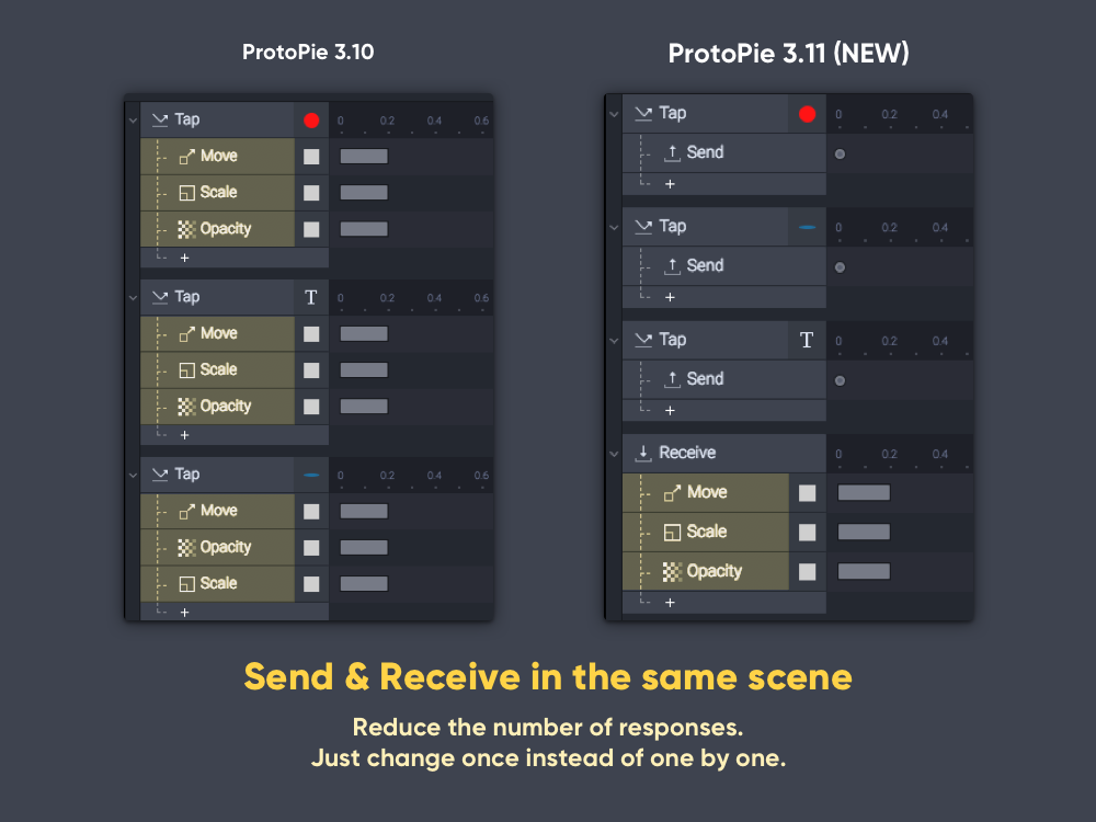 Send & Receive는 주로 IoT 디바이스의 프로토타입이나 디바이스-디바이스간 통신을 만들때에만 주로 사용되었는데 사용의 폭이 넓어지게 되었습니다. Stop 리스폰스가 개체의 인터랙션만 멈추는 기능만 제공하다가 변수를 멈출 수 있게 되었듯이 리스폰스들의 기능을 계속 고도화하는 모습이 인상적입니다.