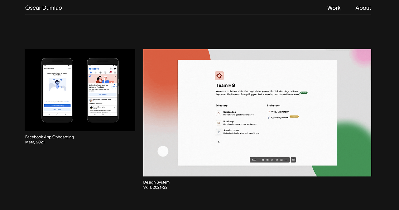 웬만한 글로벌 기업은 디자인 전문 리크루터가 있다. 이들은 '초기 인상'을 중요시하기 때문에 1명의 지원자 탐색에 10분 이상을 들이지 않는다. 그래서 최대한 웹사이트에 첫 번째 포트폴리오를 잘 볼 수 있도록 강조하여 전진배치하였고, 레쥬메는 최대한 '꾸미지 않고 깔끔한 형태'를 중시하여 제작하였다. 포트폴리오 1개의 비주얼과 충실한 문제 해결 과정을 보여주었다. (제작 및 내용에 대해서는 다음에 작성 예정.)