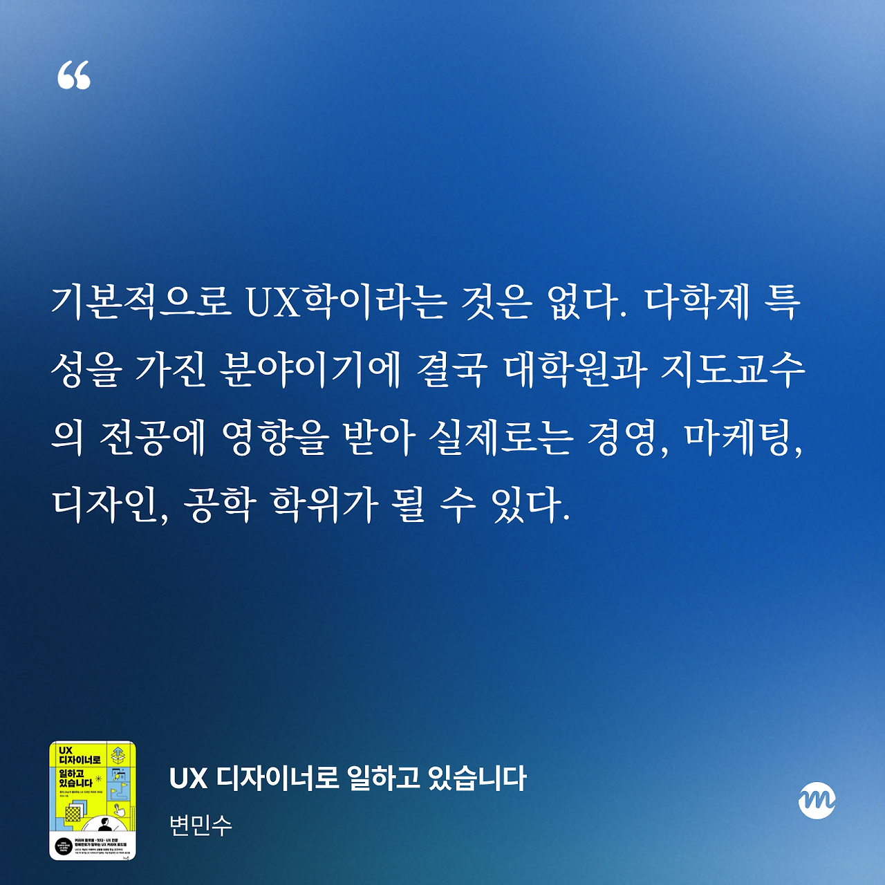 결과적으로 ‘나는 UX학 석사입니다’라고 말할 수 있다 손 치더라도, 졸업장에는 경영학, 디자인학, 산업공학 등 기존 학문명으로 기재되는 경우가 많을 것이니, 최종 학력에 어떤 학위가 붙는지 궁합을 생각하지 않을 수가 없는 것이다.