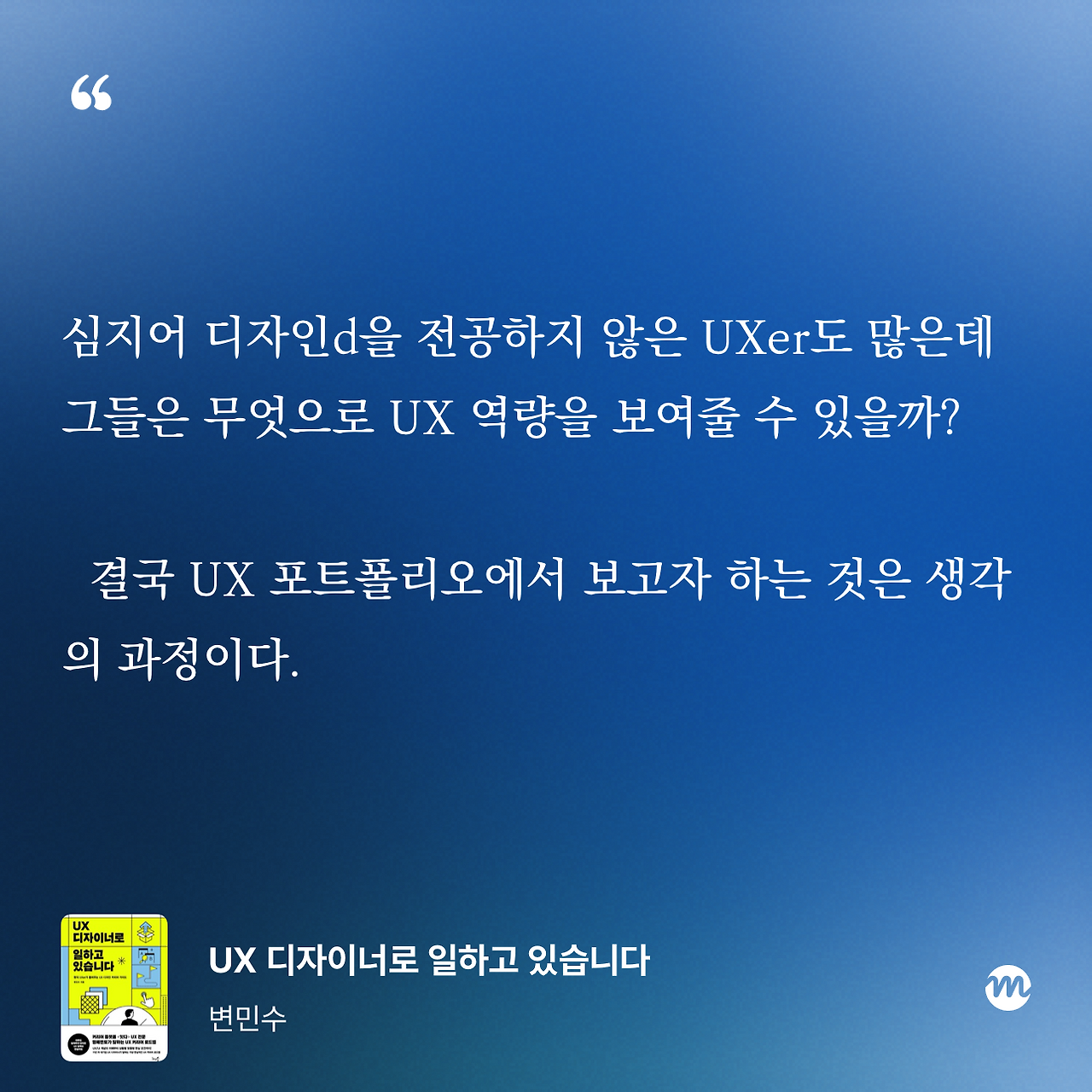 UX 포트폴리오는 단순히 결과물을 나열하는 곳이 아니라, ‘내가 어떤 사람인지’, ‘어떻게 문제를 바라보고 해결하는지’를 보여주는 서사다. 그렇기 때문에 디자인(d) 역량의 유무보다 더 중요한 기초는 사고력과 스토리텔링이며, 이는 누구나 노력으로 갖출 수 있는 부분이다.