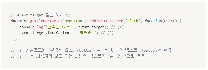 target: event.target은 이벤트가 처음 발생한 요소를 가리킴