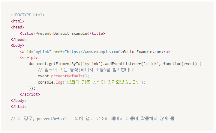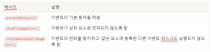 preventDefault(): 이벤트의 기본 동작을 취소함