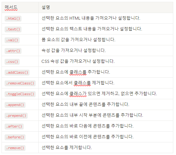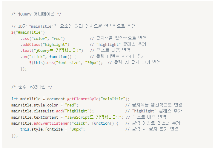 여러 메서드를 활용하여 jQuery 메서드 체이닝이 가능