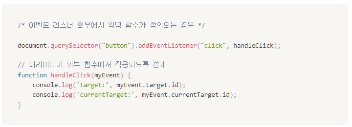 이벤트 리스너 내에서 익명 함수가 정의되는 경우