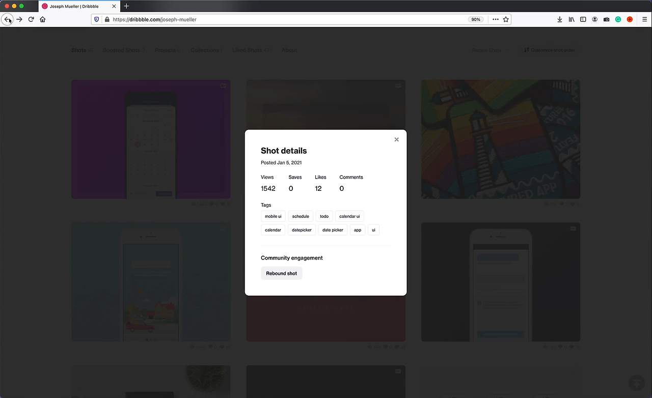 [흐름 꼬임 발생] 혼란한 사용자는 브라우저의 '뒤로 가기' 버튼을 눌렀으나, 게시글 상세 모달은 남아있고 게시글 조회 모달은 사라졌다. 이런 상황이 발생하면, 사용자는 해당 모달을 꺼보려고 흐림(dimmed) 처리된 배경을 클릭하거나 모달 닫기 버튼을 찾는 등의 행위를 해야한다.