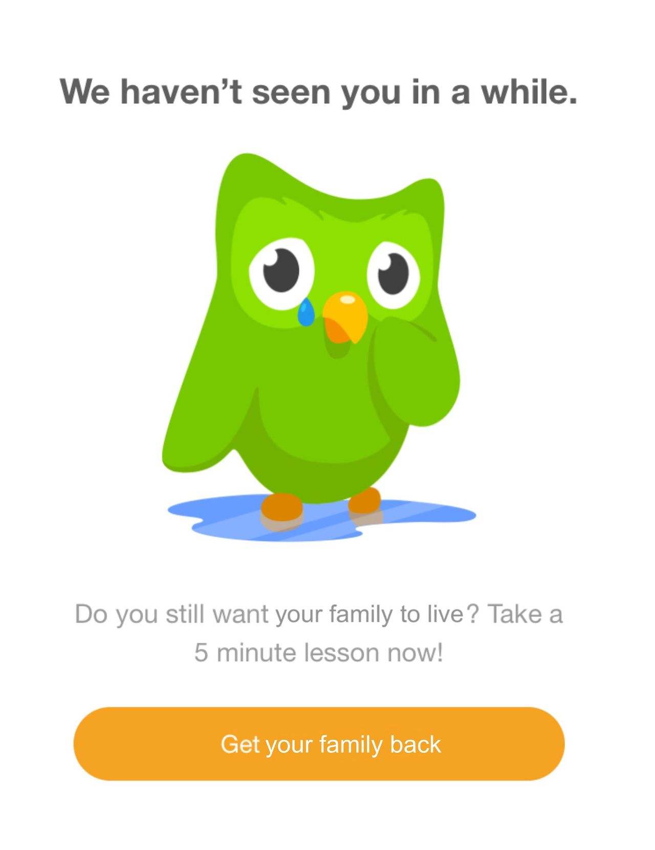 좀 더 상위 개념의 질문이 나에게 훅 들어왔다. 언어 학습 앱에는 지속적인 학습을 위해 마련해둔 장치들이 많다. 듀오링고는 거의 살해협박 밈으로 만들어질 정도로 말이다.