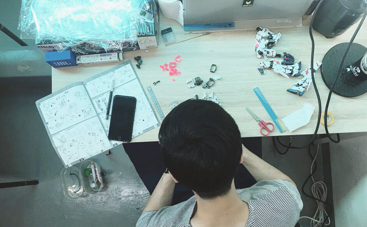 건담에 꽂혔다. 1979년 작 기동전사 건담을 시작으로 제타, 더블제타, 역습의 샤아, UC, 0083, F91, 시드, 시드 데스티니, 00, 오리진을 정주행 하고, 고2 때 중단했던 프라모델에 다시 손을 대기 시작했다. 에어브러시와 컴프레서도 장만하고 마트에서 저렴한 책상을 사서 지하실에 아주 작업실을 만들어 버렸다.