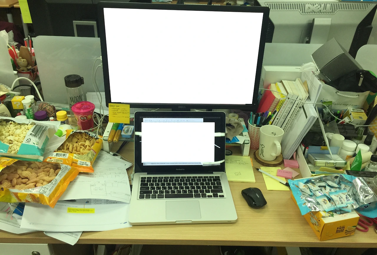 HCI 학회 발표를 앞두고 주말에 잠깐 회사에 나왔다. 오랜만에 책상을 찍으며 이런 생각을 해 본다.