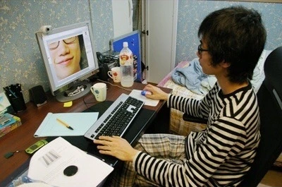 웹캠으로 셀카를 찍고 피부 보정을 하고 있다. 2005년 대학교에 입학하고 책상부터 바꿨다. 그동안 집에서 쓰던 책상은 책장과 상판, 서랍장으로 구성된 오래된 책상 세트. 초등학생 때부터 쓰던 것이라 더 크고 멋진 책상으로 바꾸고 싶었다. 부모님께는 학교 과제를 하려면 더 큰 책상이 필요하다고 어필했다. 책상이 크면 작업도 더 잘할 수 있을 것만 같았다. 길이 160cm에 짙은 브라운 색의 일룸 책상을 사면서, 나이가 들어도 서재용으로 오래오래 써야겠다는 다짐을 했다. 이때는 결혼이라는 것을 미처 고려하지 못했다. 신혼집에 들이기엔 너무 큰 책상이었다. 그래도 13년 동안 정말 잘 사용했다. 갈아만든 배를 페트병째 올려놓아도 공간이 남는다. 사실 이 책상에서 과제는 별로 안 했다. 학교 모형 제작실에 있는 작업대가 더 유용했기 때문이다. 이 책상은 나의 싸이월드와 소서리스 육성을 책임졌다.