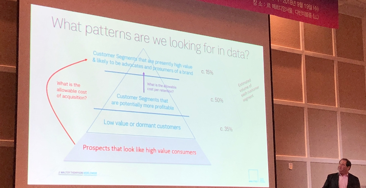과거에는 구매 과정이 선형적이었다. 지금은 더 이상 선형적으로 살지도 않고, 구매하지도 않는다. 고객 데이터를 찾아서 활용하는 방법이 중요하다. 데이터를 통해 학습해야 한다. 디지털은 모든 문제의 해결책이 아니다. 데이터를 그 자체로 받아들이면 안 된다. 브랜드 GAP의 전자상거래 54%는 남성이 흰색 블라우스를 구매한 것이었다. 이유는? 카드가 없는 자녀가 아버지에게 부탁한 것이다. 매출의 상위 20%를 차지하고 있는 고객을 알아야 한다. 이 고객층에 집중해서 타켓팅해야 한다.