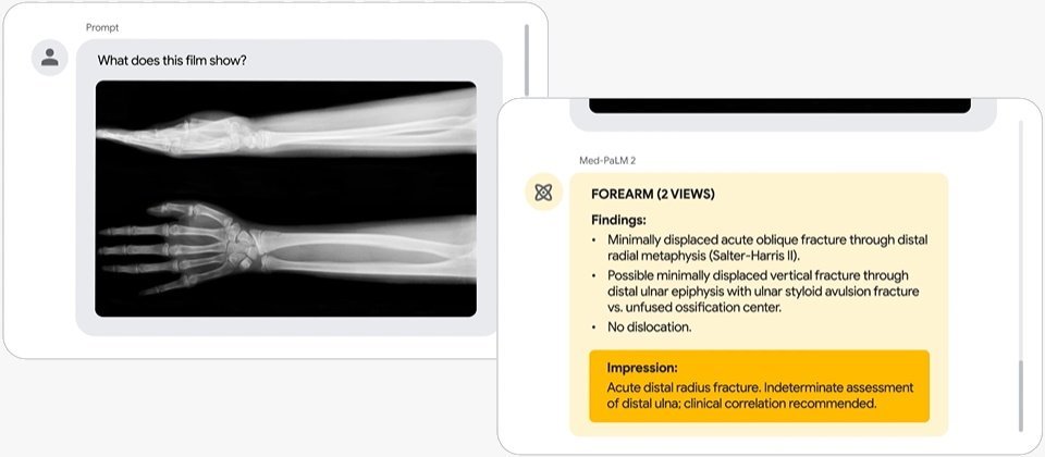 구글 역시 의료용 언어모델을 발전시키고 있다. 구글이 개발한 대규모 언어 모델인 바드(Bard) 기반으로 '메드 팜 2(Med Palm 2)'을 개발하여 헬스케어 서비스에 활용하고 있다. 채팅 형태로 환자를 진찰하고 결과를 해석하는 역할을 주로 담당하고 있는데 결과만 전달하는 형태가 아닌 의학적 근거를 기반으로 해석을 하여 도움을 주고 있다. 메드팜 2는 상세한 의학적 지식을 포함해 진단 결과를 채팅창으로 보여줘 실제 의료진들도 참고할 수 있는 수준일만큼 신뢰도가 높다. 메이요클리닉과 같은 의료기관에서는 메드팜 2를 채택해 채팅봇으로서 적극적으로 활용하고 있는 중이다. 실제 의사가 진단하는 결과와 메드팜 2가 진단하는 내용과 서로 어떻게 차이가 나는지 계속 테스트를 하면서 보완해 나가고 있다.