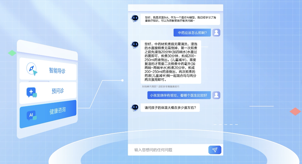 바이두도 2023년 9월 의료용 언어모델 '링이'를 발표하였다. 의사와 환자의 대화를 서로 분석해 현재 환자가 겪고 있는 질환과 상담 결과를 의료기록으로 자동 생성할 수 있다. 오랫동안 의사와 환자의 대화를 누적하고, 환자의 대화를 학습하면서 현재 환자 질환 상태를 분석할 수도 있다. '링이'모델은 환자, 의료진 모두에게 활용될 수 있는데 환자는 자신의 질환에 맞춰 어떻게 약을 복용해야 하고, 건강관리를 해야 하는지 건강 상담 서비스를 제공받을 수 있다. 의료진은 질환 치료 방안을 추천받는 방식으로 활용할 수 있다.