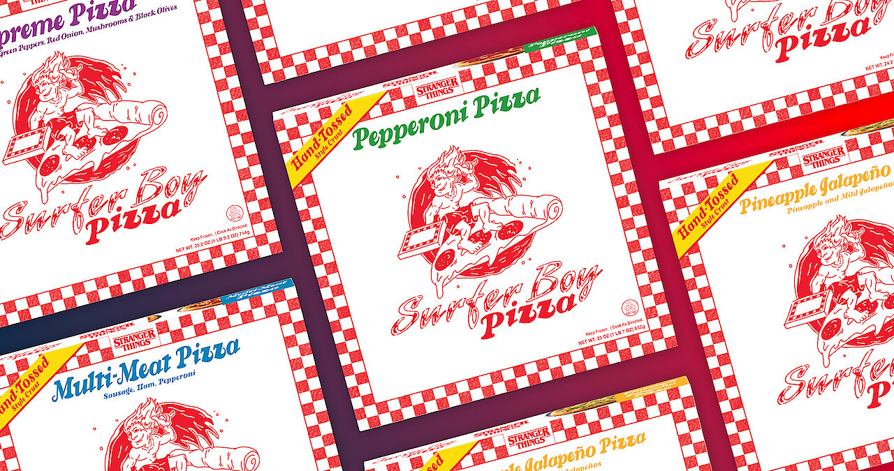 이러한 전략의 대표적인 사례가 '기묘한 이야기' 속 가상의 피자가게를 현실로 구현한 '서퍼보이 피자'이다. 2022년 넷플릭스는 Palermo Villa와 협업해 냉동 피자를 출시하였다. 기묘한 이야기 시즌 5 방영을 앞두고 다시 웰마트 등의 유통망에 서퍼보이 피자를 재출시했다. 단순히 피자를 먹는 제품으로서 선보인 게 아니라 <기묘한 이야기>와 연계해 박스 디자인, 한정판 스티커를 마련해 팬들이 세계관을 소유하고 기념할 수 있도록 만든 것이다. 이는 넷플릭스의 소비자가 시청에서 소유, 체험으로 확장되는 전형적인 IP 상품화 전략이다.