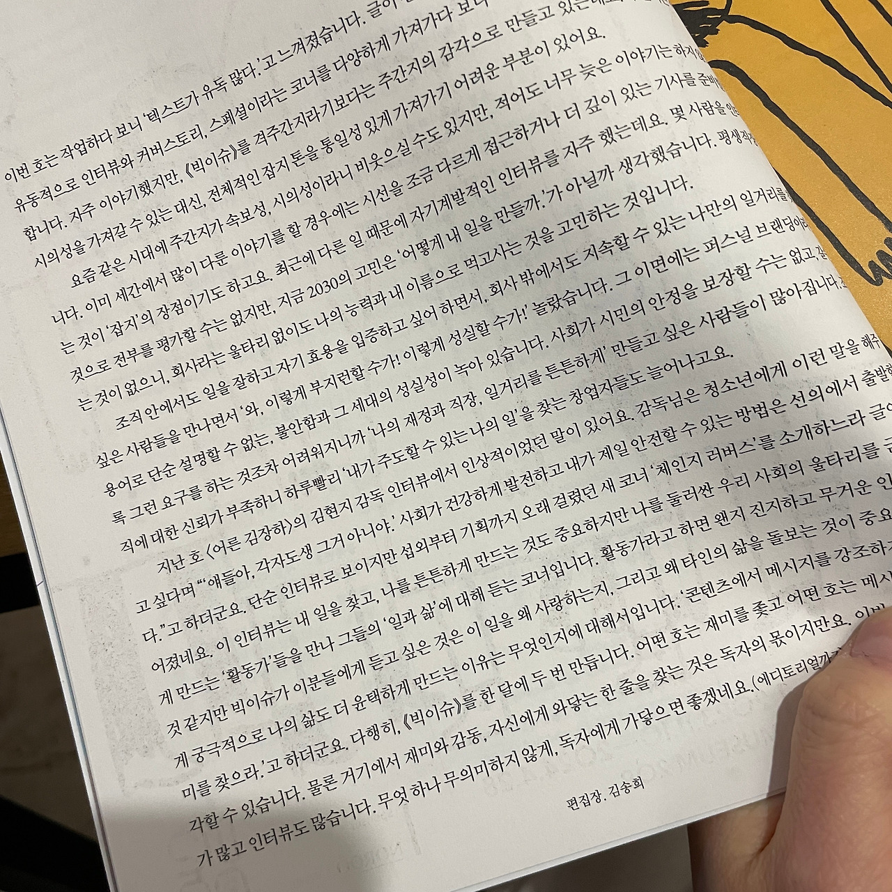 그리고 어제 먹은 5천 원짜리 아이스크림이 생각났다. 잡지 한 권 7천 원에 글도 읽고 빅이슈 판매원께 판매금액 일부도 돌아간다면 꽤 의미 있지 않나 라는 조금 웃긴 생각도 들었다. 그래서 잡지를 샀다.