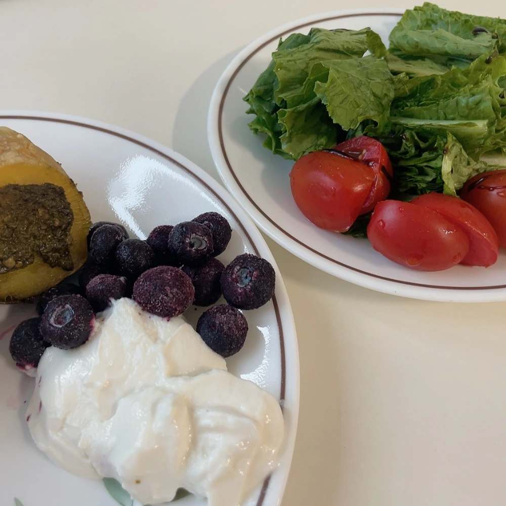 몸에 기운은 없지만 저녁식사 구색을 갖추어 본다. 조촐하고 요리랄 것도 없지만, 그냥 내가 좋아하는 것들로. 오븐에 구운 고구마, 그릭요거트, 샐러드를 접시에 담는다. 참고로 토마토, 블루베리와 그릭요거트는 아주 잘 어울린다!
