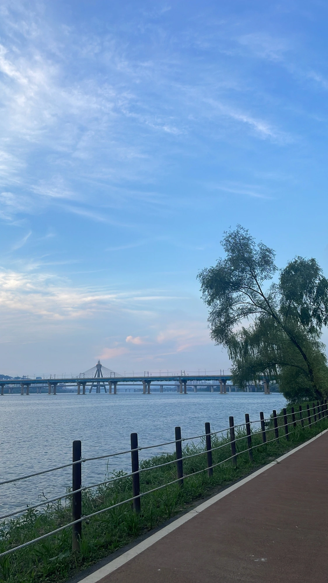다리를 건너는 데에는 생각보다 시간이 걸려요. 눈에 담기는 장면들이 잠시 걸음을 멈추게 하거든요. 심지어는 핑크빛을 띠는 구름을 멍하니 보고, 걸어온 길을 돌아보면 한강공원이 또 달리 보여요. 마술 지팡이로 휘저은 듯한 구름은 하늘에 커다란 새를 그려 놓아요. 해가 서서히 저무는 장면 속에서 시간의 흐름을 경험해요. 새로운 산책길에 경험하는 모든 것들은 조금 색다른 감각과 생각들이 깨어나게 해 주었어요.