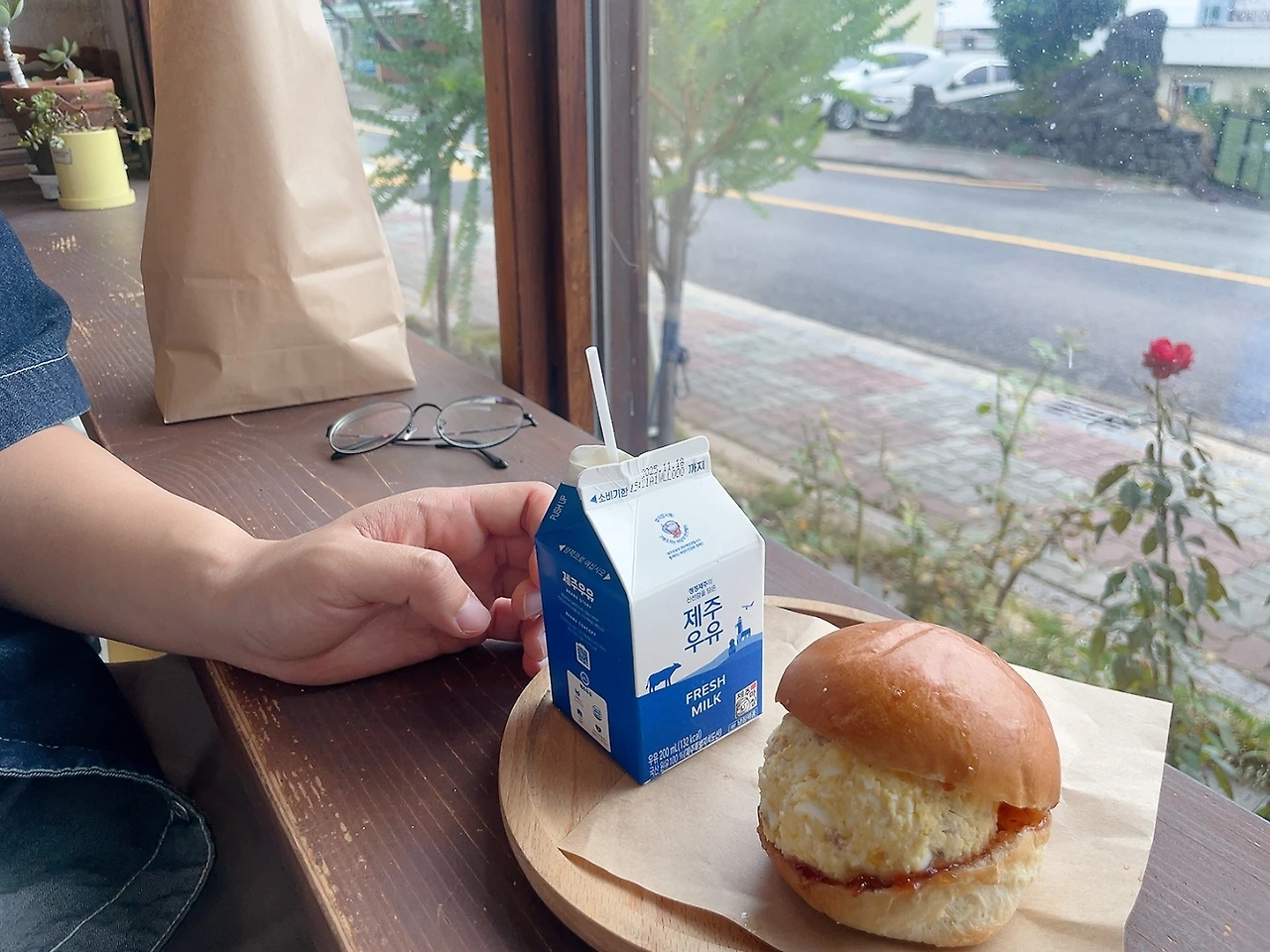다음날 아침 다미안이라는 빵집에서서 간단히 빵을 먹었다. 내가 빵을 좋아해서 남자친구가 가기로 계획한 가게였다. 빵을 좋아하는 사람은 좋아하는 사람과 아침에 빵을 먹는 상상을 하는데 그걸 함께 해줘서 고마웠다. 우리는 가볍게 하나 나누어 먹고, 한라산 아래 메밀집으로 향했다. 가는 길 안갯속에 보이는 한라산이 무척 웅장해 보였다. 다음 제주에 올 때는 체력을 길러 한라산에 가보자는 얘기를 하며 식당으로 향했다. 이번에 성산일출봉을 완등했으니 아마 우리가 한라산에 오르는 날도 있을 것이다.
