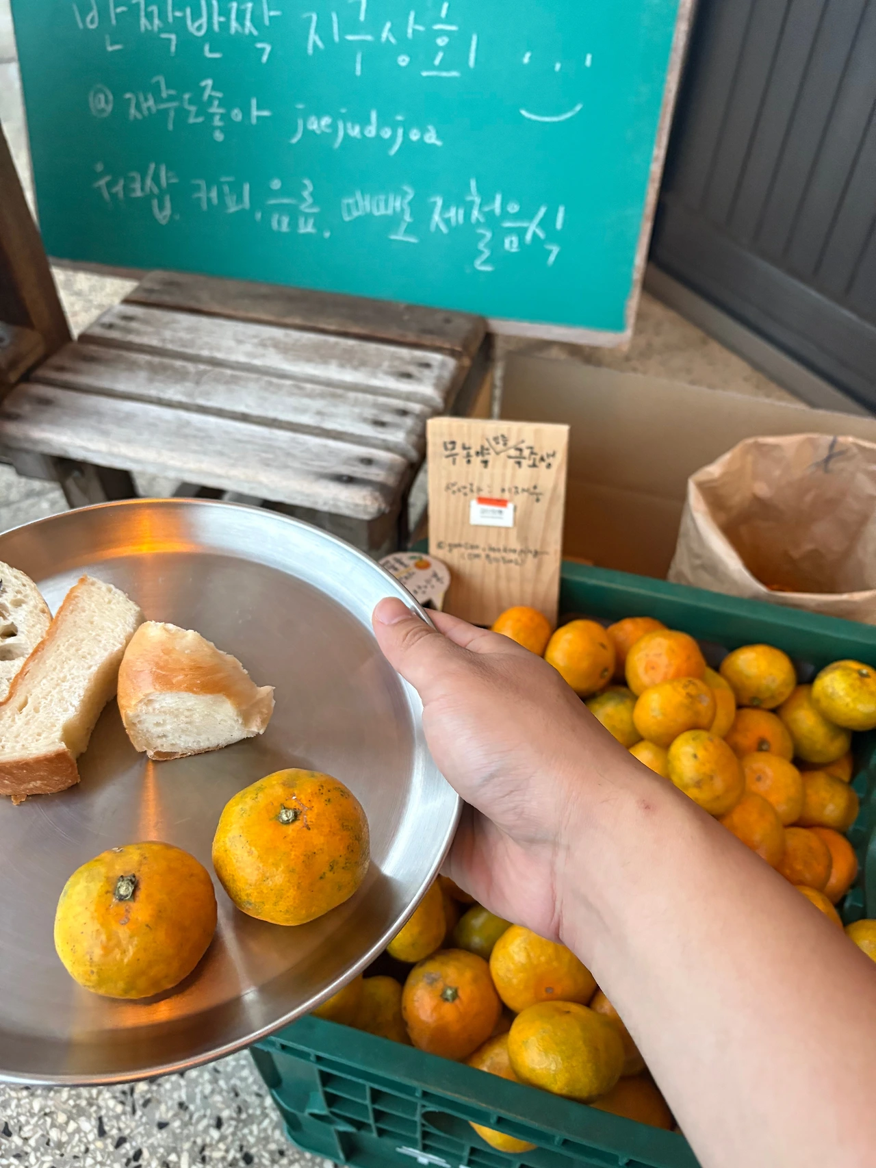 곡에 대한 대화와 공연을 함께하는 동안 이 시간이 끝나지 않았으면 좋겠다고 생각했다. 옆에 있는 사람, 가을비가 서늘히 내리는 밤 이곳의 따뜻함, 좋은 음악. 그리고 나중에 알고 보니 빵과 감귤은 가수 김목인을 좋아하는 팬(이자 제주도의 상인이기도 한)분들이 협찬했다고 한다. 여기 온 모두가 너무 아름다운 사람들이다.